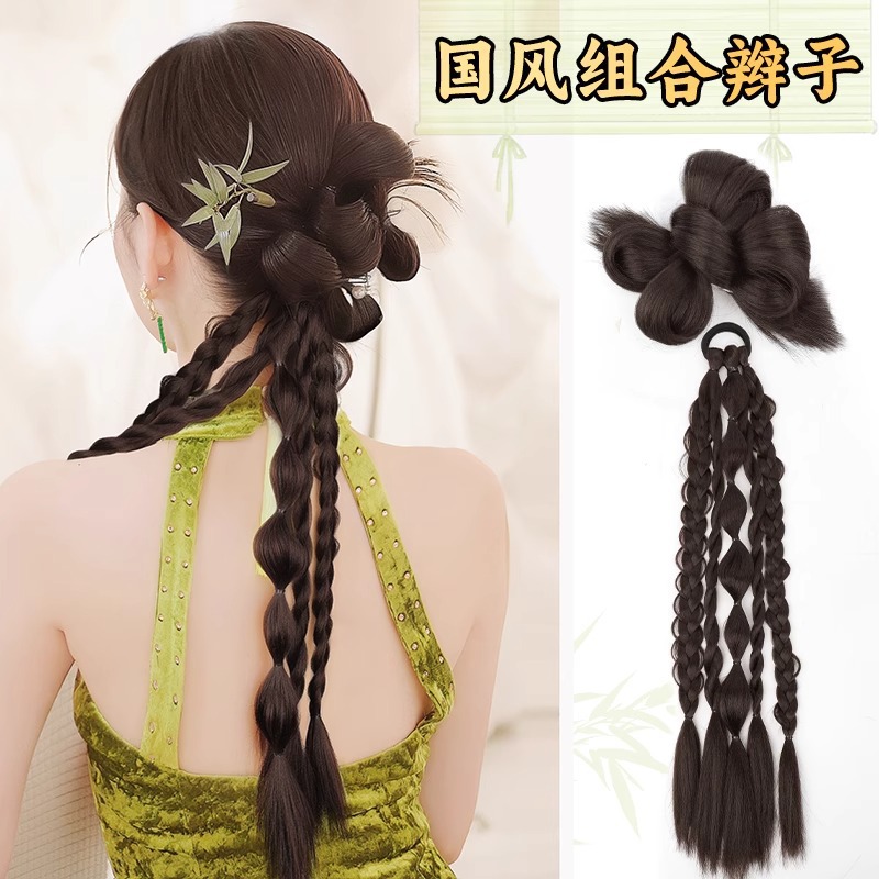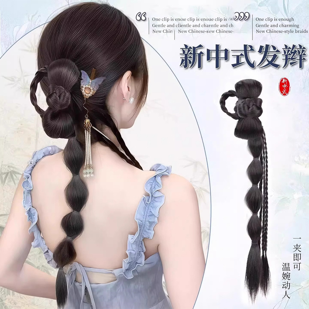 新しい中国式のかつらのお下げの子供の新型のかつらは泡を包んでお下げの組み合わせの国風の新婦のかつらのポニーテールをねじります。