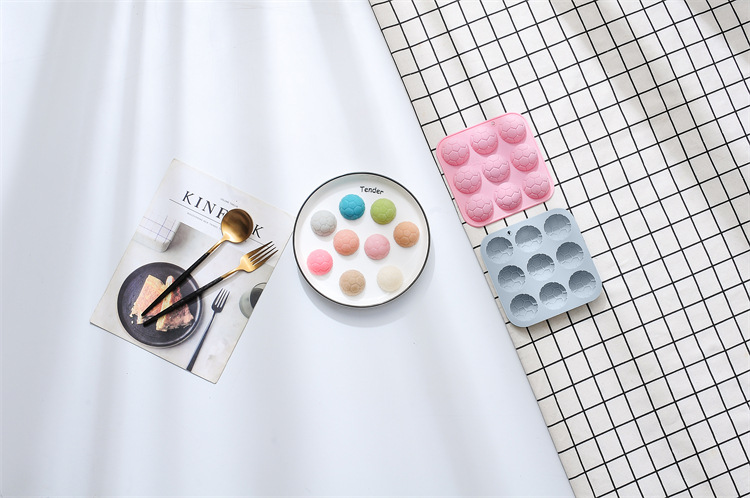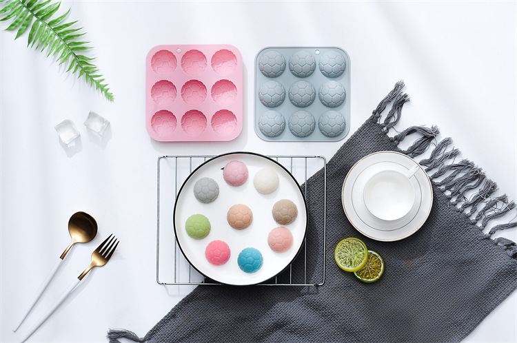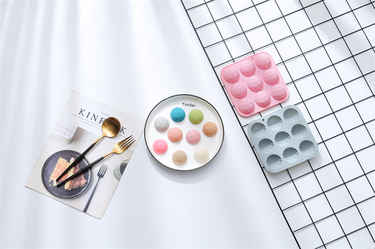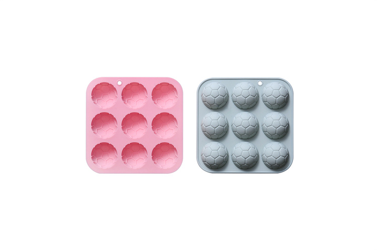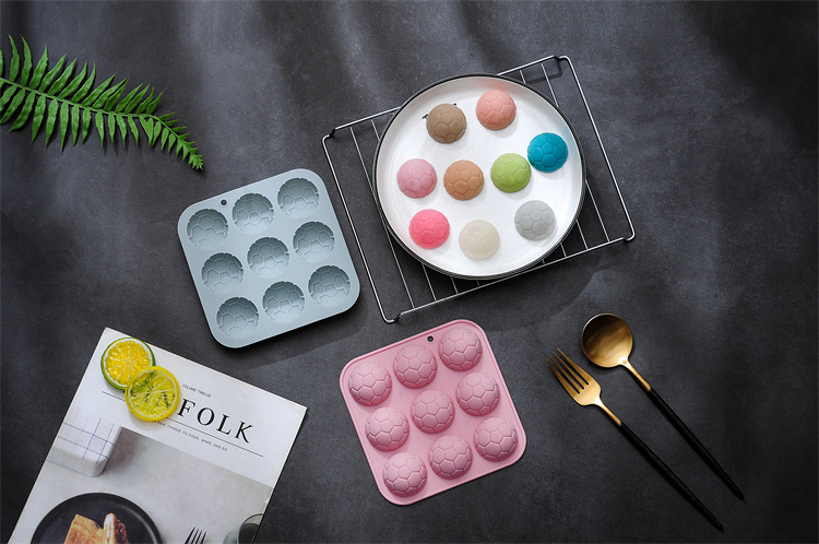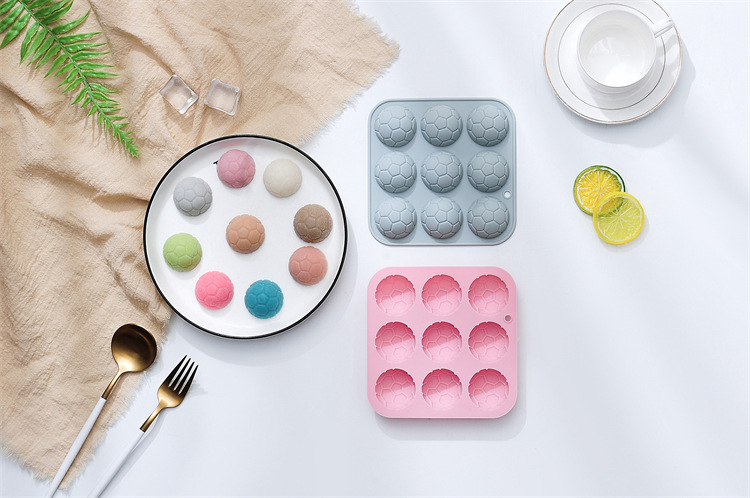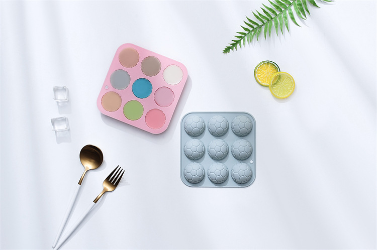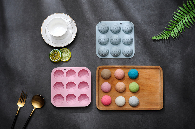 現物9連サッカーの形のシリカゲルのケーキの鋳型は砂糖のチョコレートの鋳型をひっくり返して飾ります。