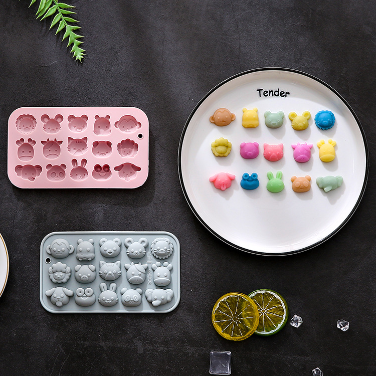 現物15連15種類の異なる動物の顔写真の形のシリカゲルの鋳型のグミの焙煎ケーキのチョコレートの鋳型