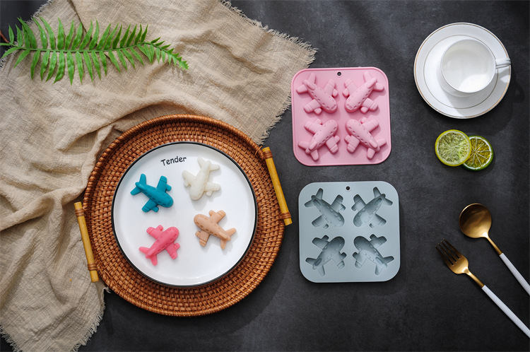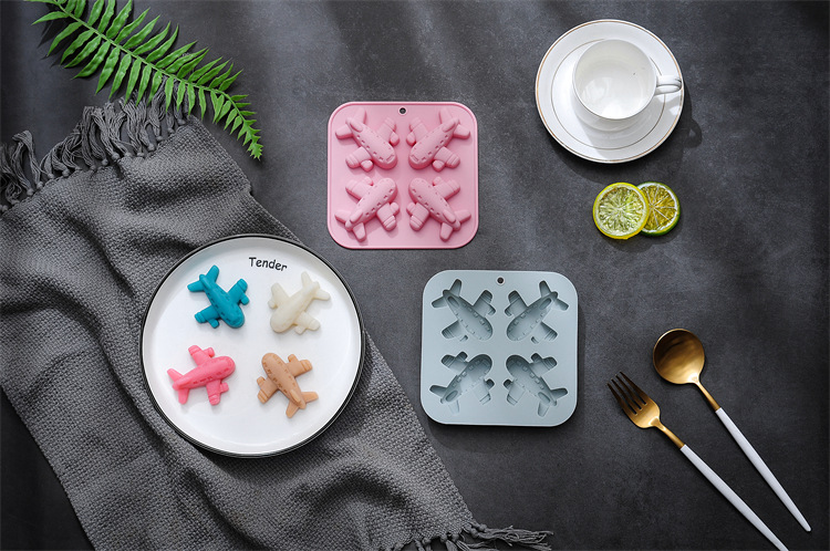 現物4連飛行機造形シリカゲル金型焙煎ツールチョコレートケーキ金型補助食氷滴ゴム金型