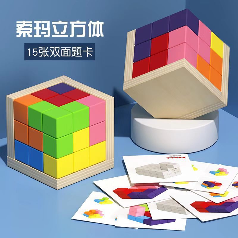 ソマの立方体の積み木のテトリスの幾何学の立体の七巧板の子供の益智の数学の生のジグソーパズルのおもちゃ