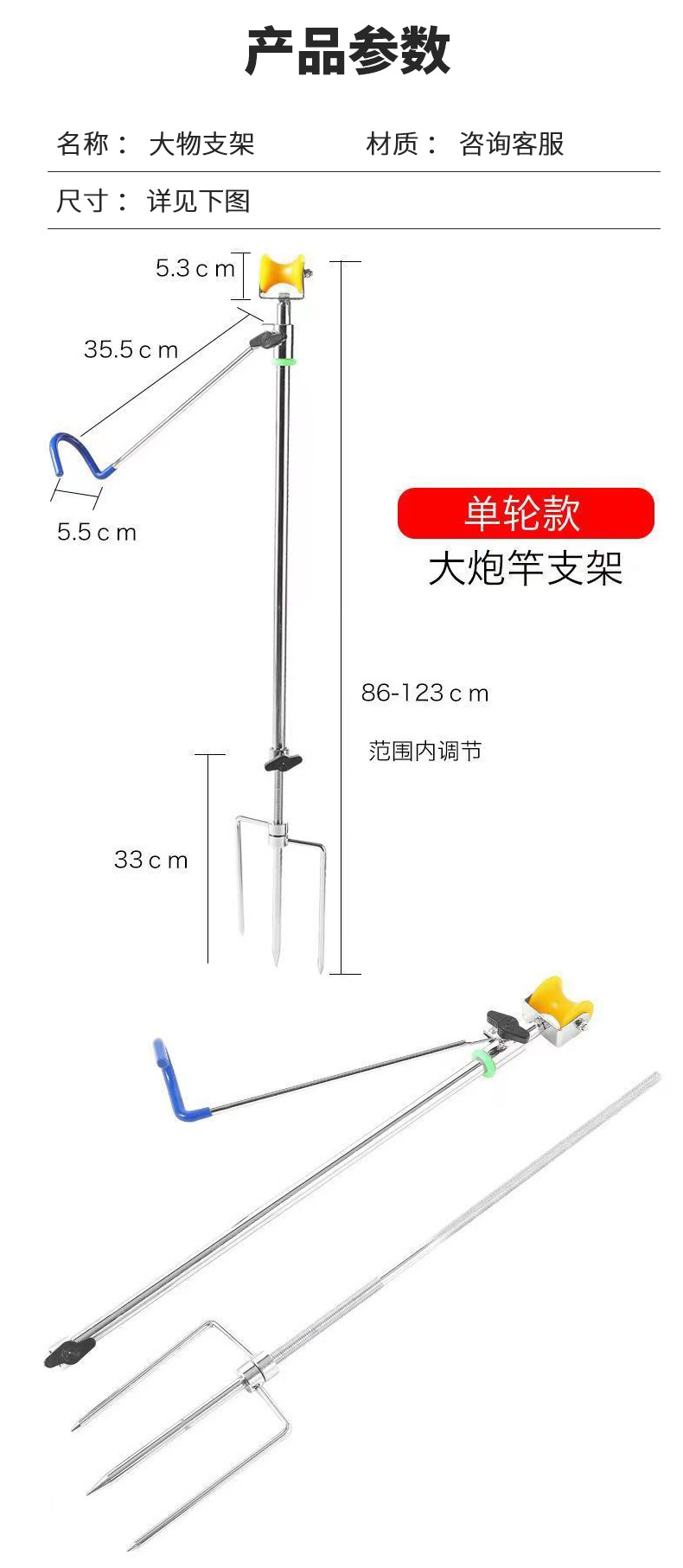 钢扣版不锈钢长杆支架龙门架8-30米长竿专用炮杆炮台滑轮架杆渔具