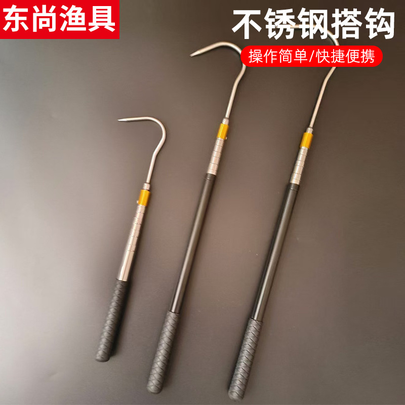 ステンレス製フック漁具部品伸縮cc棒携帯型ゴムグリップミニ釣り伸縮棒フック