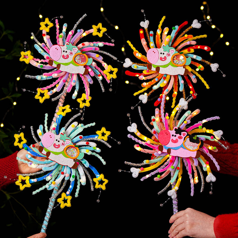 马年新年摇摇乐旋转烟花灯笼儿童手工diy材料元宵节手提发光花灯