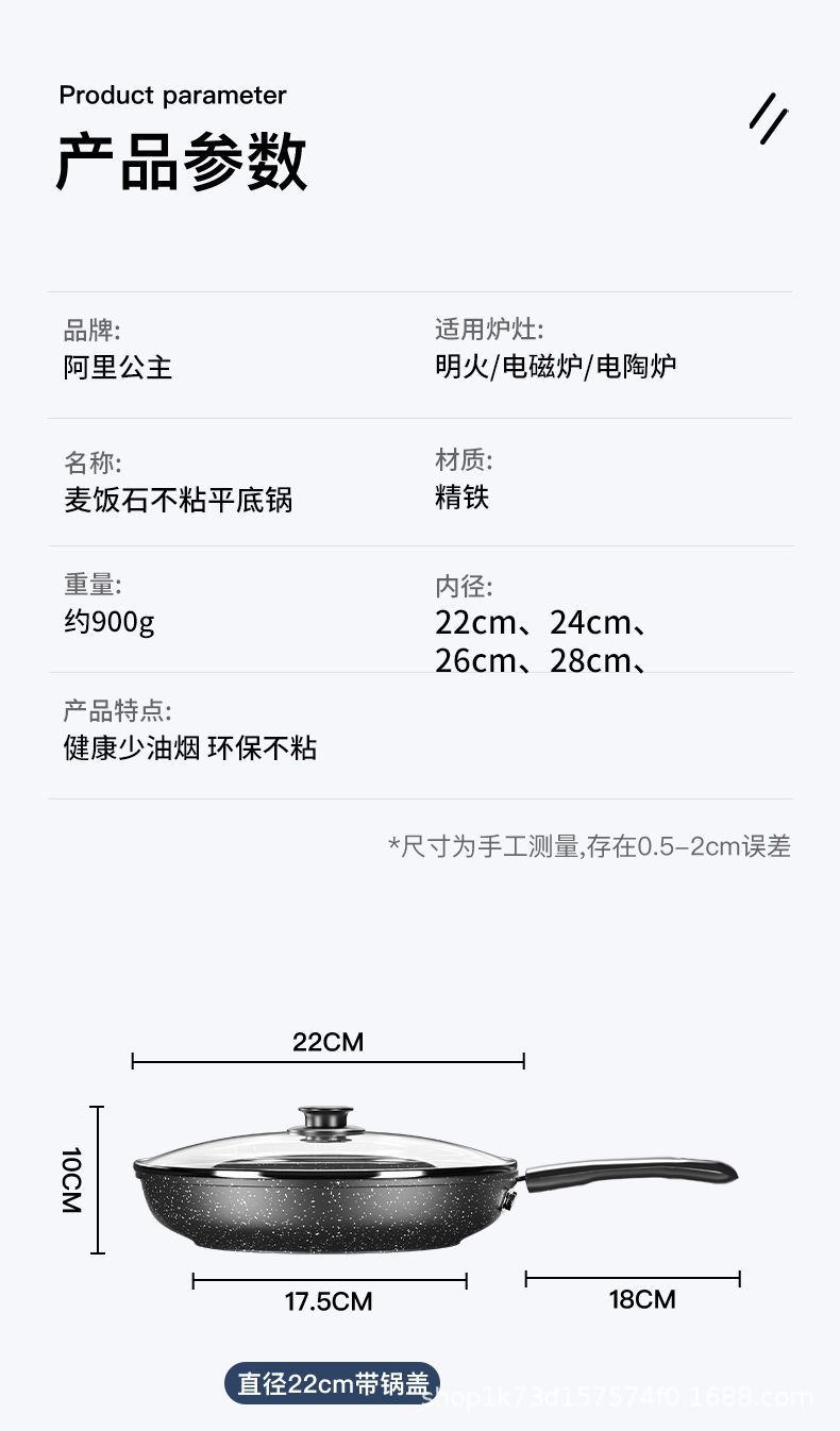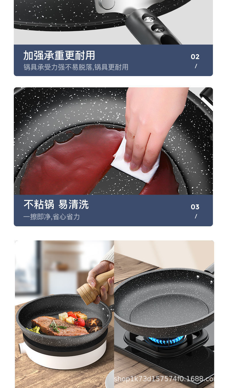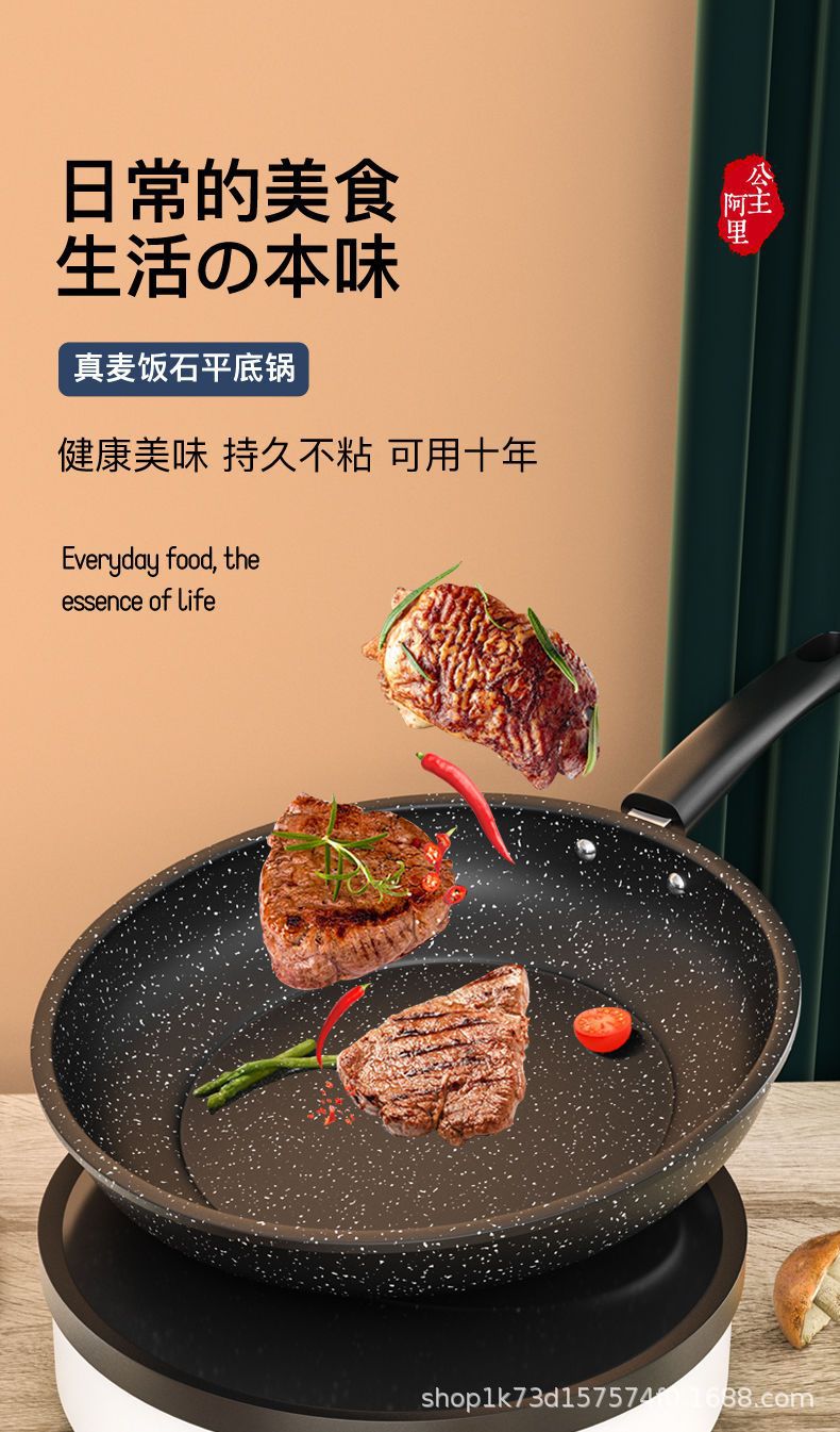 麦饭石平底煎锅家用平底锅煎盘煎牛排煎鸡蛋不粘锅平底锅一件代发