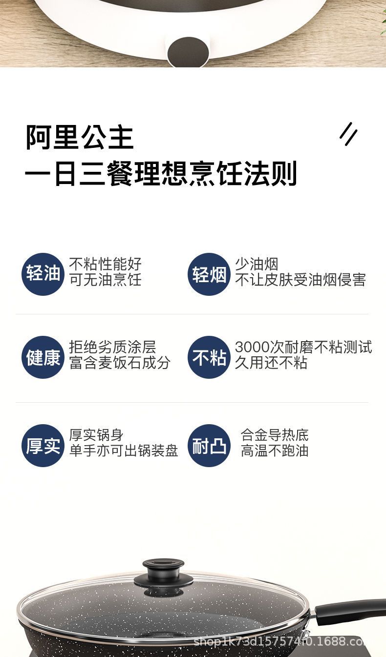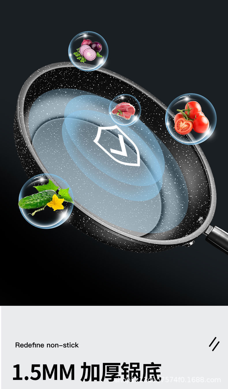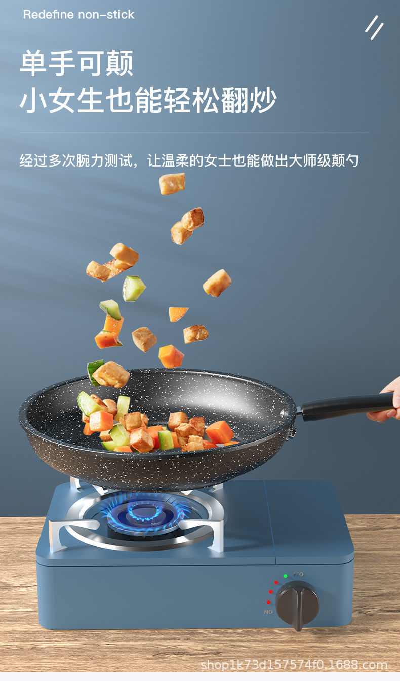 天然麦飯石炒め鍋は鍋にくっつかない家庭用無油煙炒め鍋ガスコンロ電磁ストーブ共通のフライパン炒め鍋