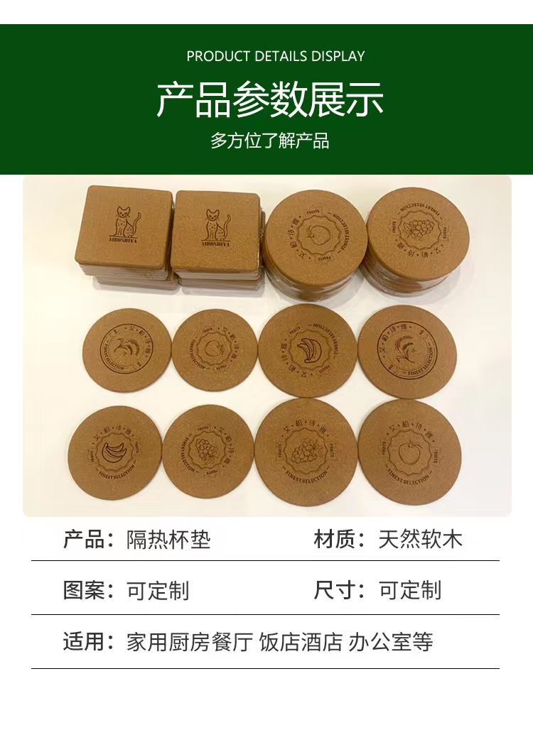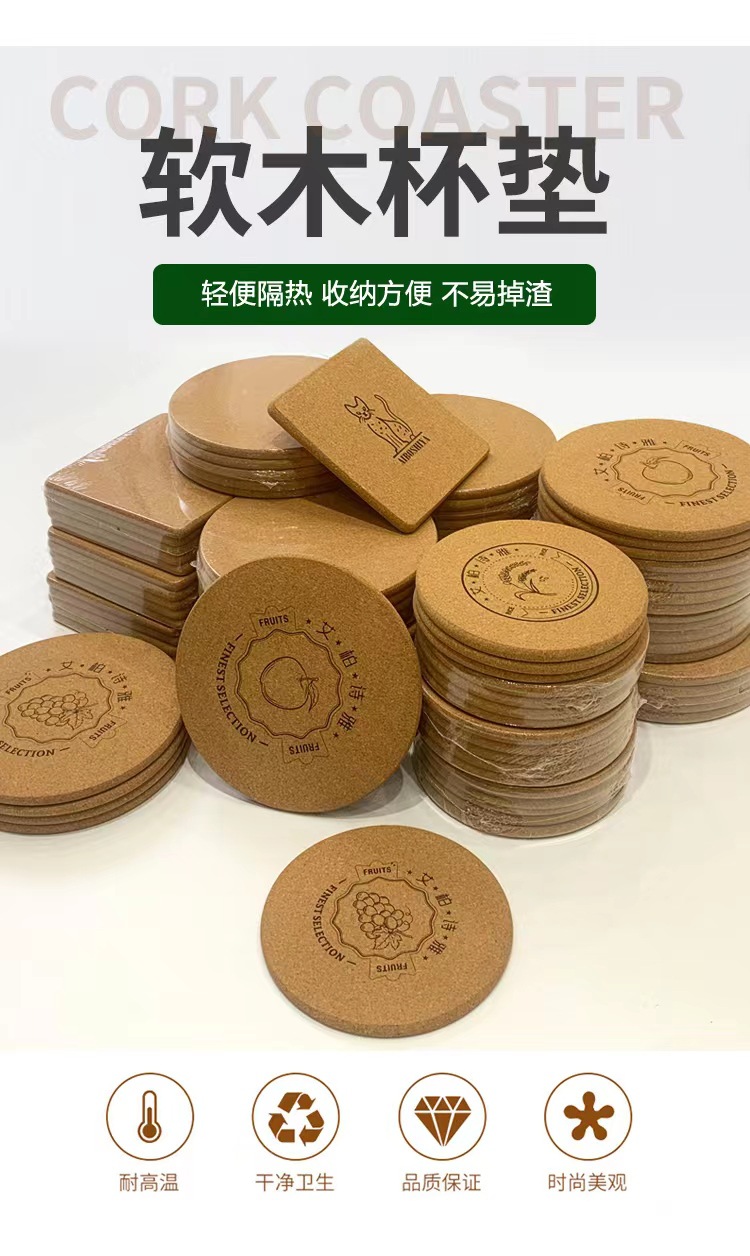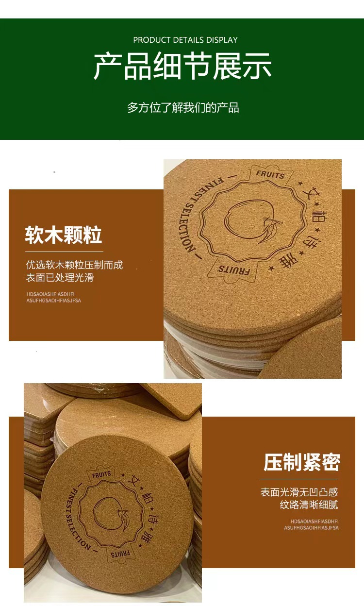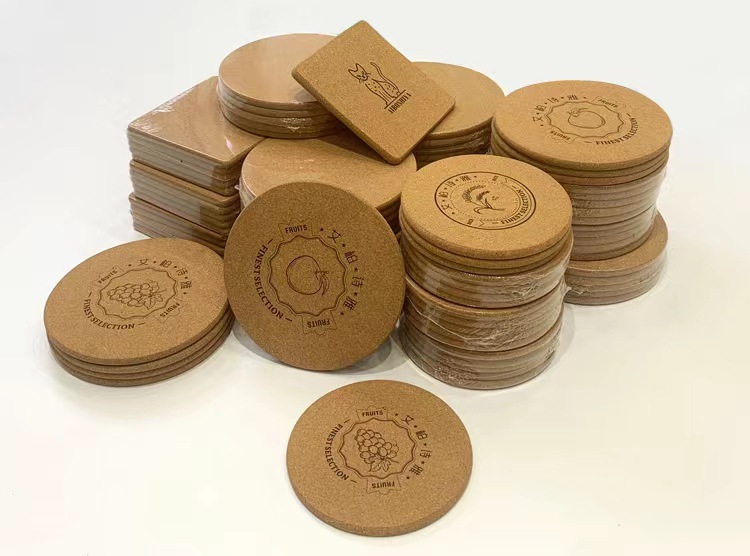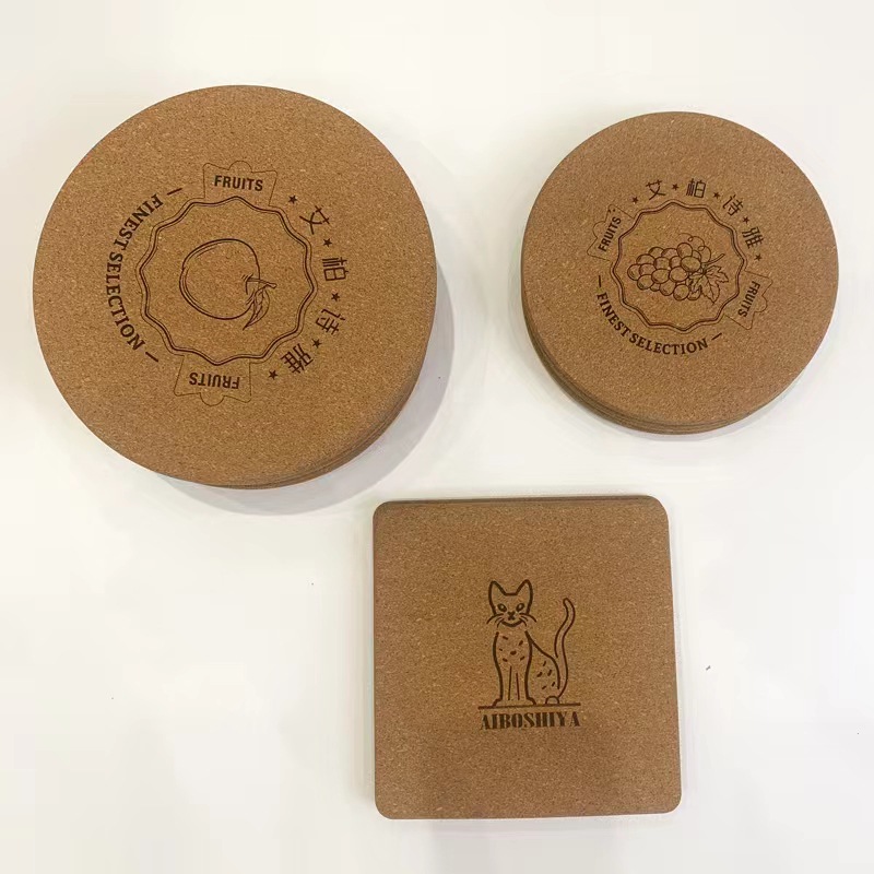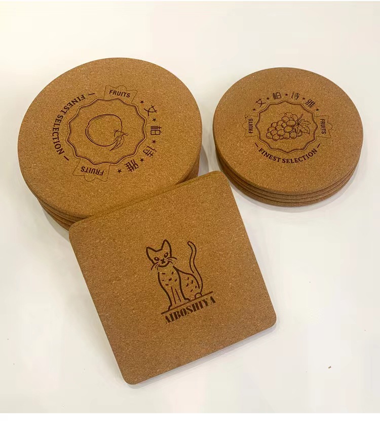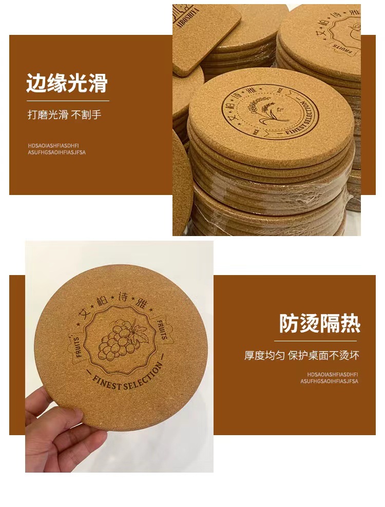 国境を越えたソース円形の四角いコルクコースターの食器マットの断熱マットの水松コルクマットはロゴを印刷できます。