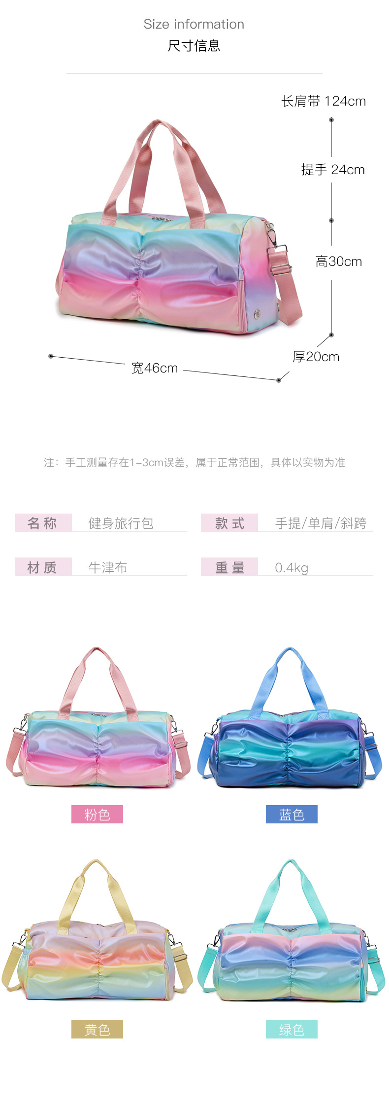 韓国スタイルのファッショナブルなカラフルなヨガフィットネスバッグ、女性用軽量で多用途の短距離旅行バッグ、オックスフォード布マタニティバッグ