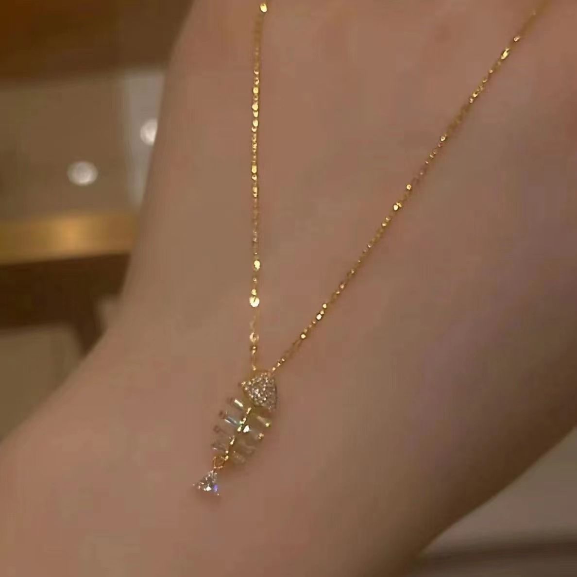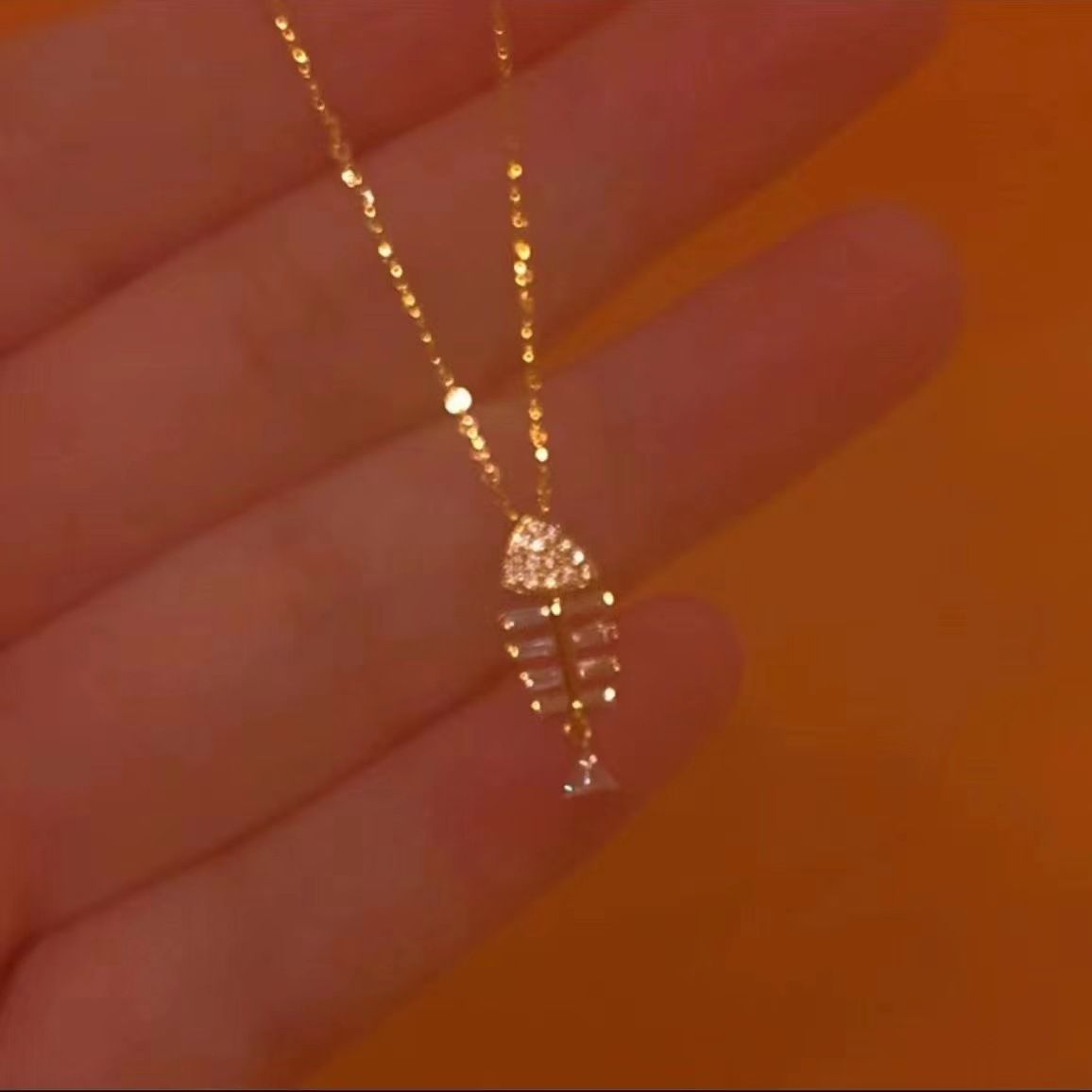 小红书爆款闪烁骨骼精致爆闪小鱼骨吊坠极细项链高级感一件代发