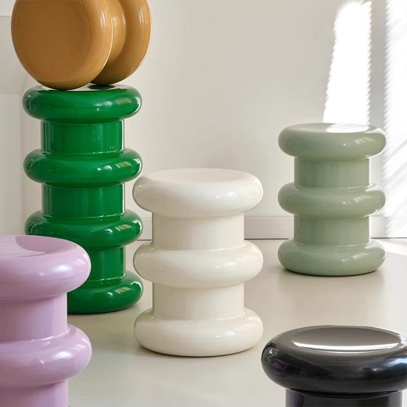 北欧のクリーム風のプラスチックの腰掛けの家庭用の靴の腰掛けの客間の小さい板の腰掛けの簡単な子供の低い腰掛けの創意の丸い形の腰掛け