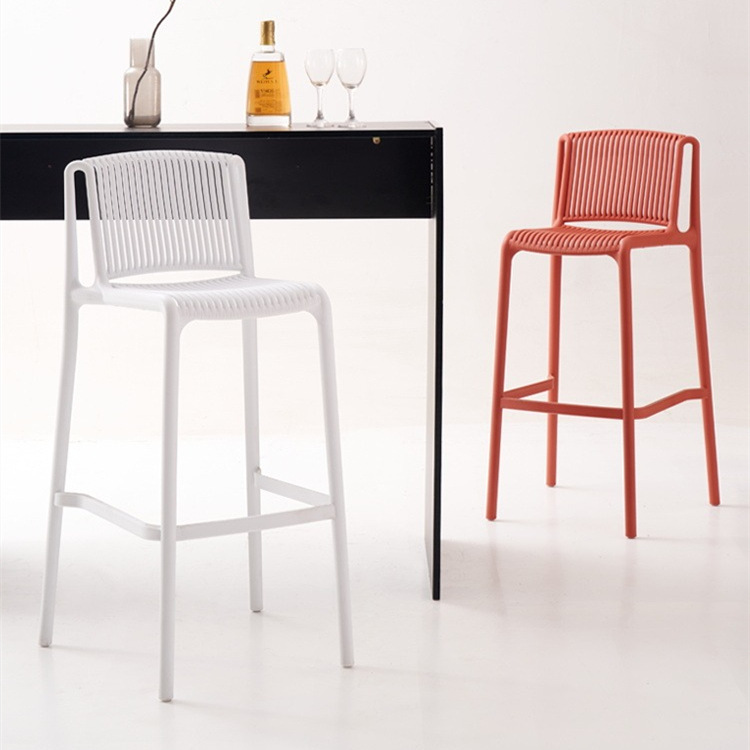 北欧のシンプルなカウンターチェアの軽い豪華なプラスチックバーの椅子は、高い椅子のネットの赤いバーの腰掛けを積み重ねることができます。