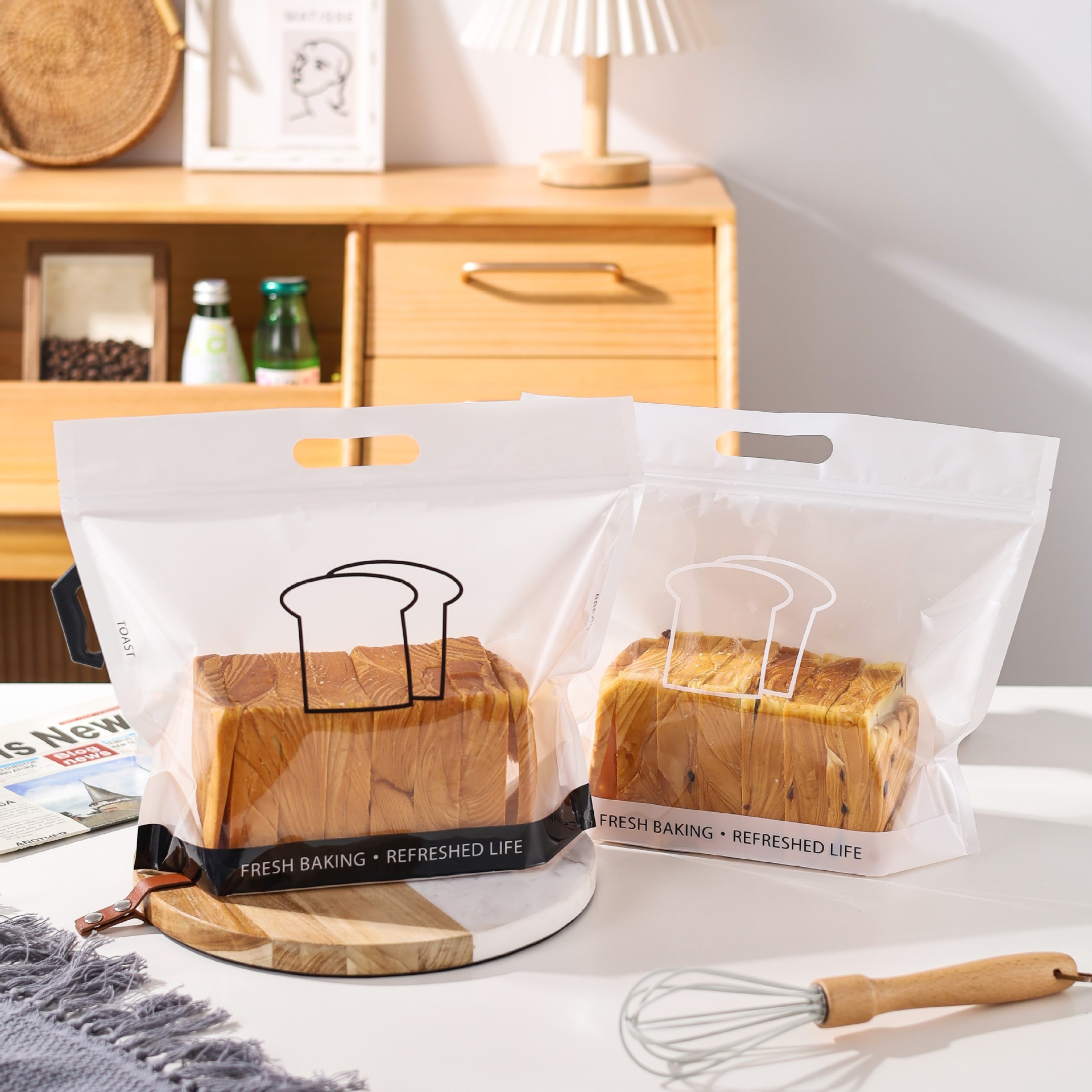 トースト包装袋透明450グラムジッパースライスパン角包欧包手提げ焙煎梱包自封袋