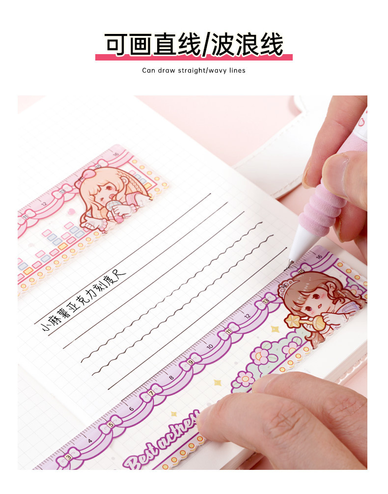 学生向けの漫画の揺れ定規、見栄えの良い漫画の定規、減圧学生測定定規、描画定規