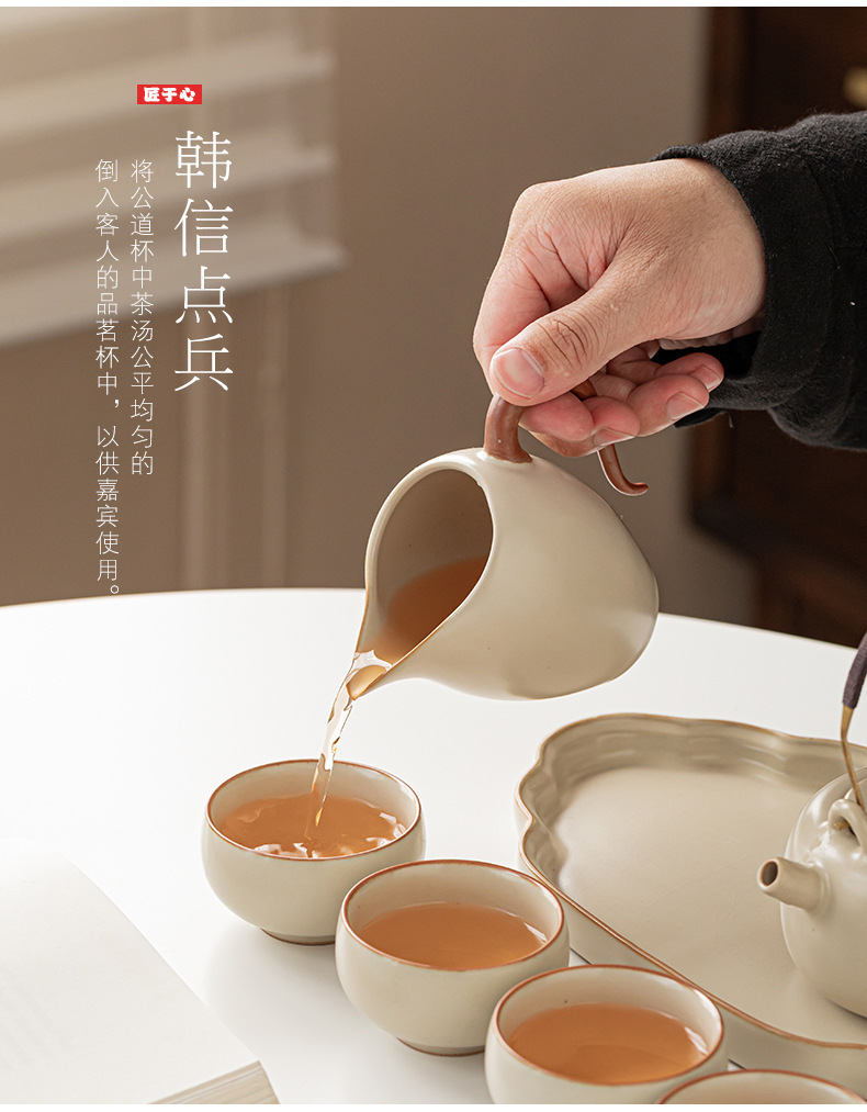 汝窑猫咪便携旅行功夫一人独饮小茶具户外办公单人泡茶专用快客杯