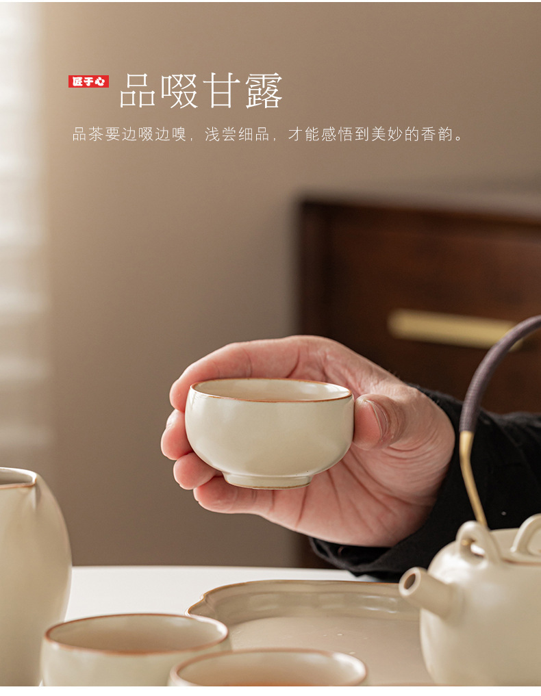 高端米黄汝窑茶壶茶杯功夫茶具轻奢高档套装家用办公室送礼套装