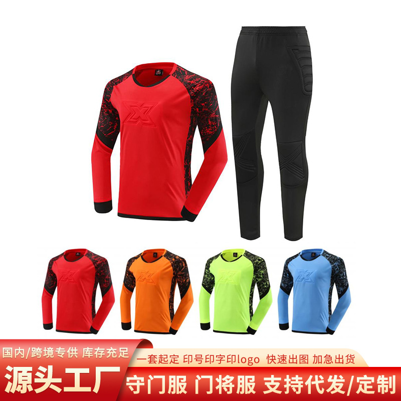 サッカーのゴールキーパーのゴールキーパー服のスーツの保護は厚いスポンジの長袖のユニホームの龍門のシャツの訓練服の越境の専用です。