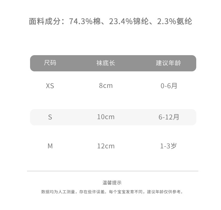 子供用靴下のサイズ Xsコード0 ~ 6ヶ月,Sコード6-12ヶ月,Mコード1 ~ 3歳
