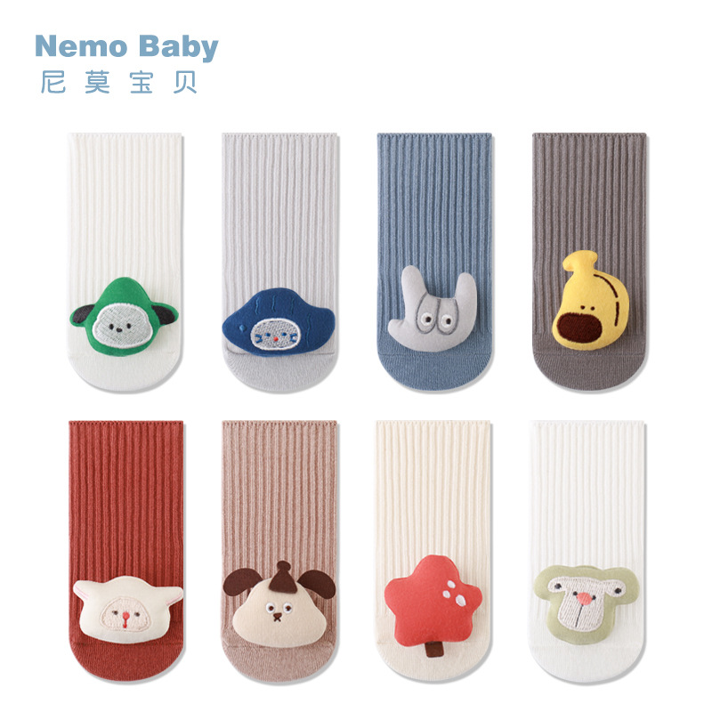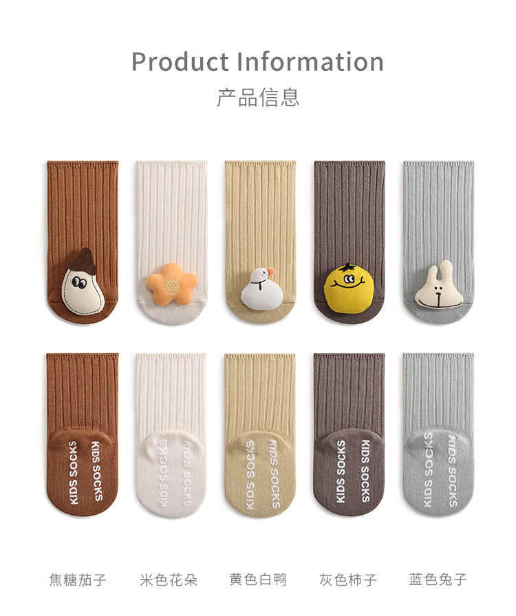 宝宝袜子秋季新款卡通公仔儿童中筒袜防滑点胶宝宝室内学步地板袜