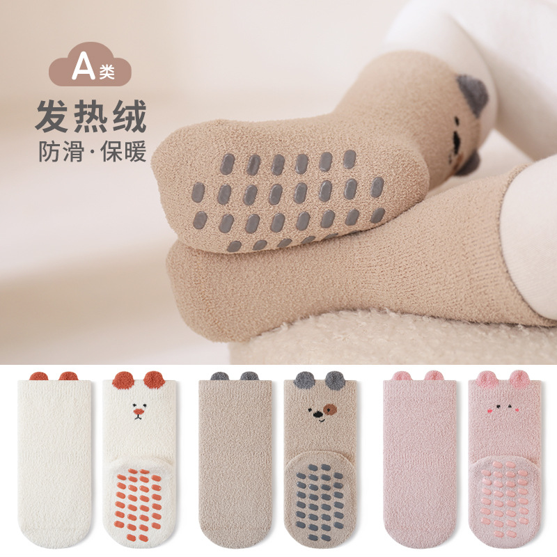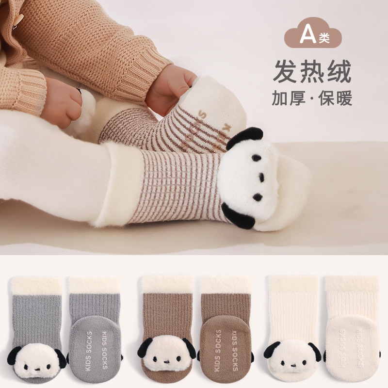 冬季新款婴幼儿地板袜加绒加厚可爱卡通男女童学步袜宝宝中筒棉袜
