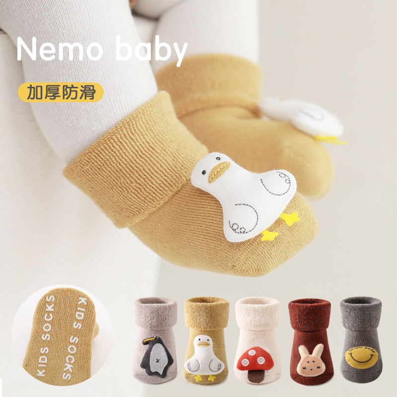 秋冬新生児赤ちゃん靴下にベルベットをつけて滑り止め保温靴下を厚くしてかわいい立体人形赤ちゃんの中筒靴下