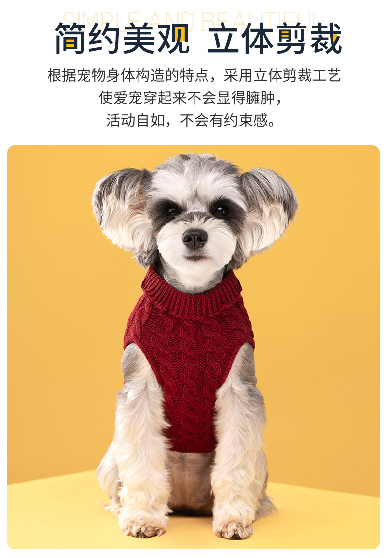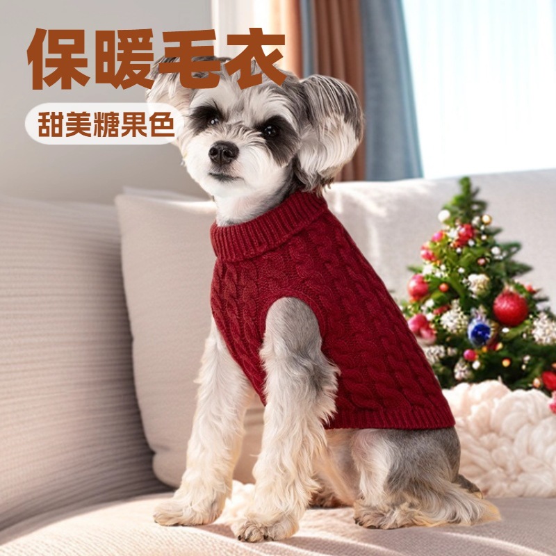 秋冬ペット犬猫保温純色クラシック麻花セーター厚手高襟折り襟毛糸服卸売り