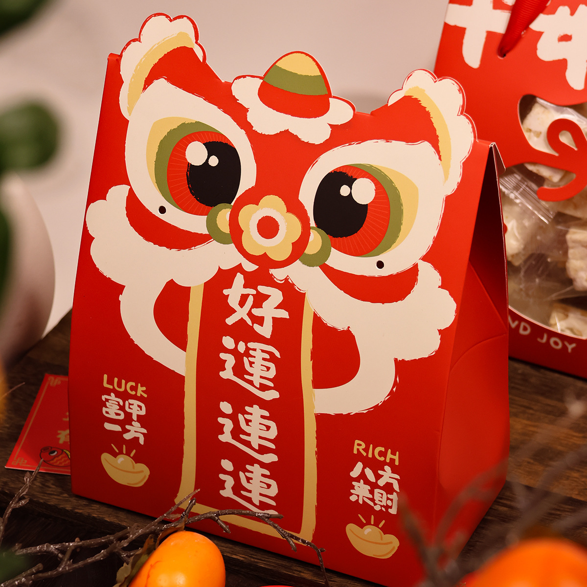 2026年新年獅子舞元旦年物ギフトボックス雪花餅クッキー包装袋ヌガーもち米船型包装箱