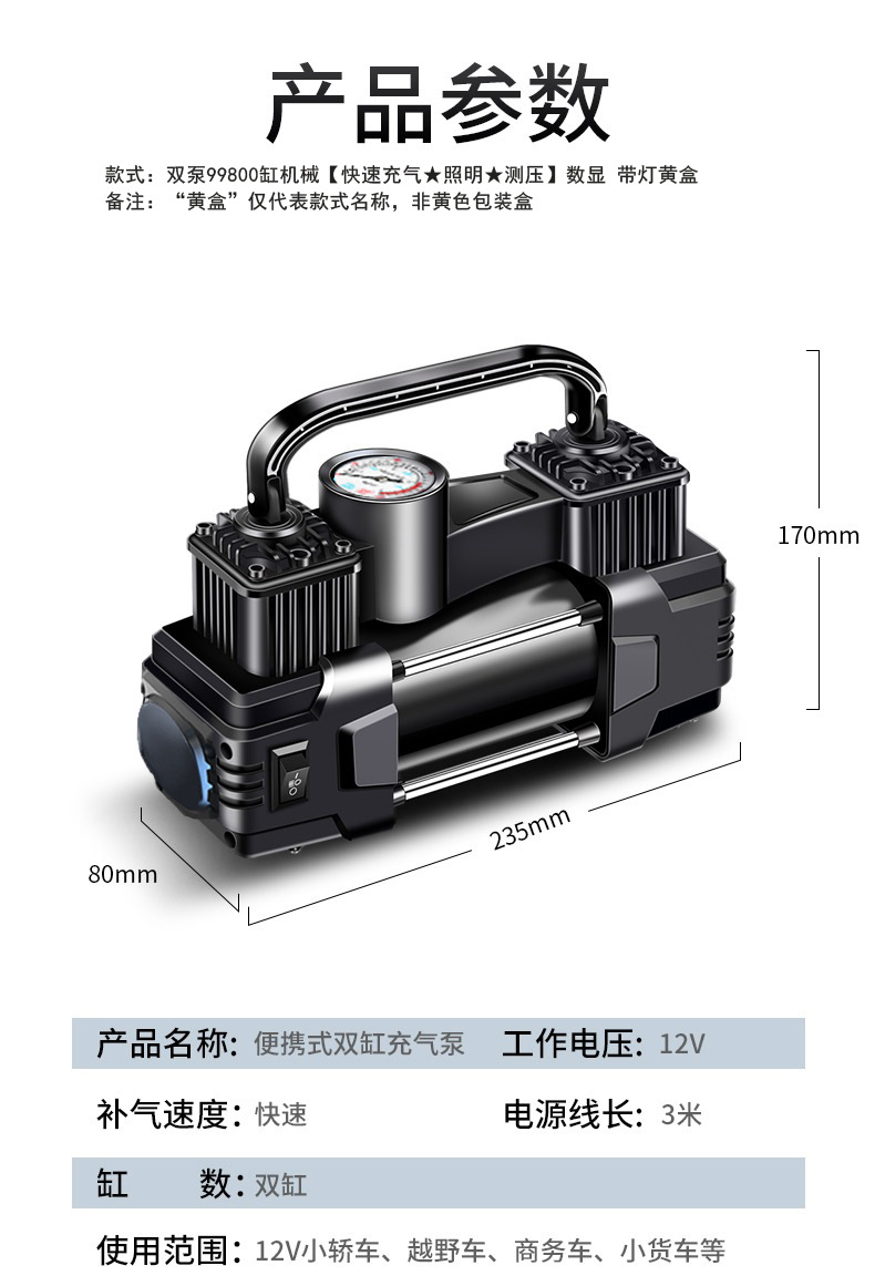 車載インフレータブルポンプ自動車用ハイパワー多機能携帯型電動二重シリンダ高圧速沖タイヤインフレータブルポンプ