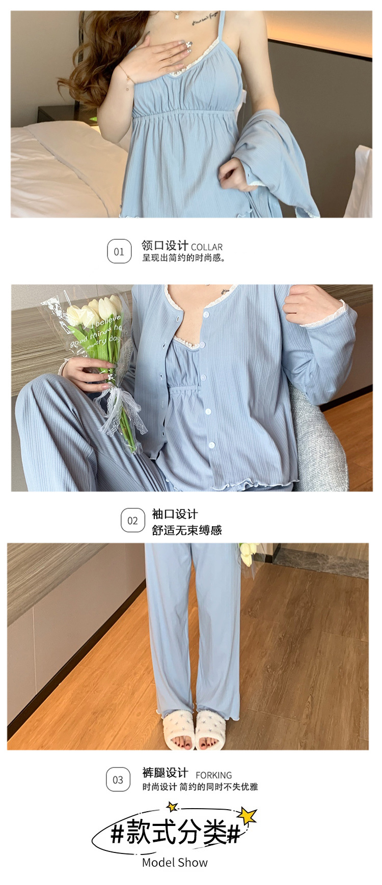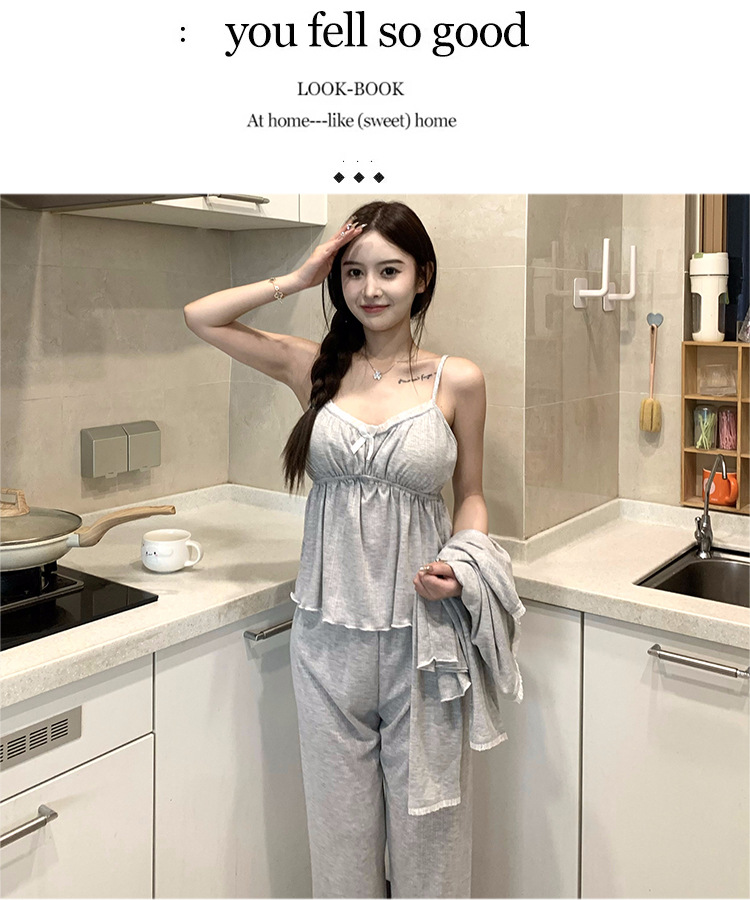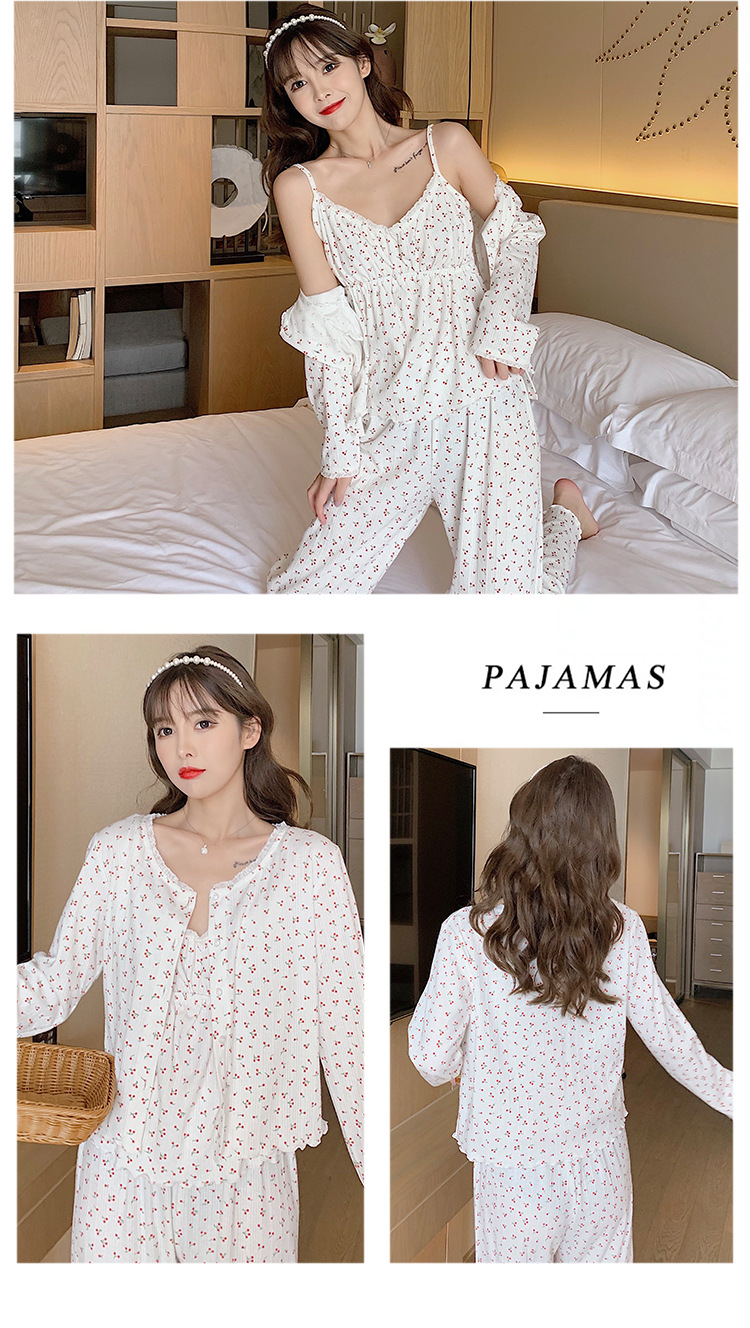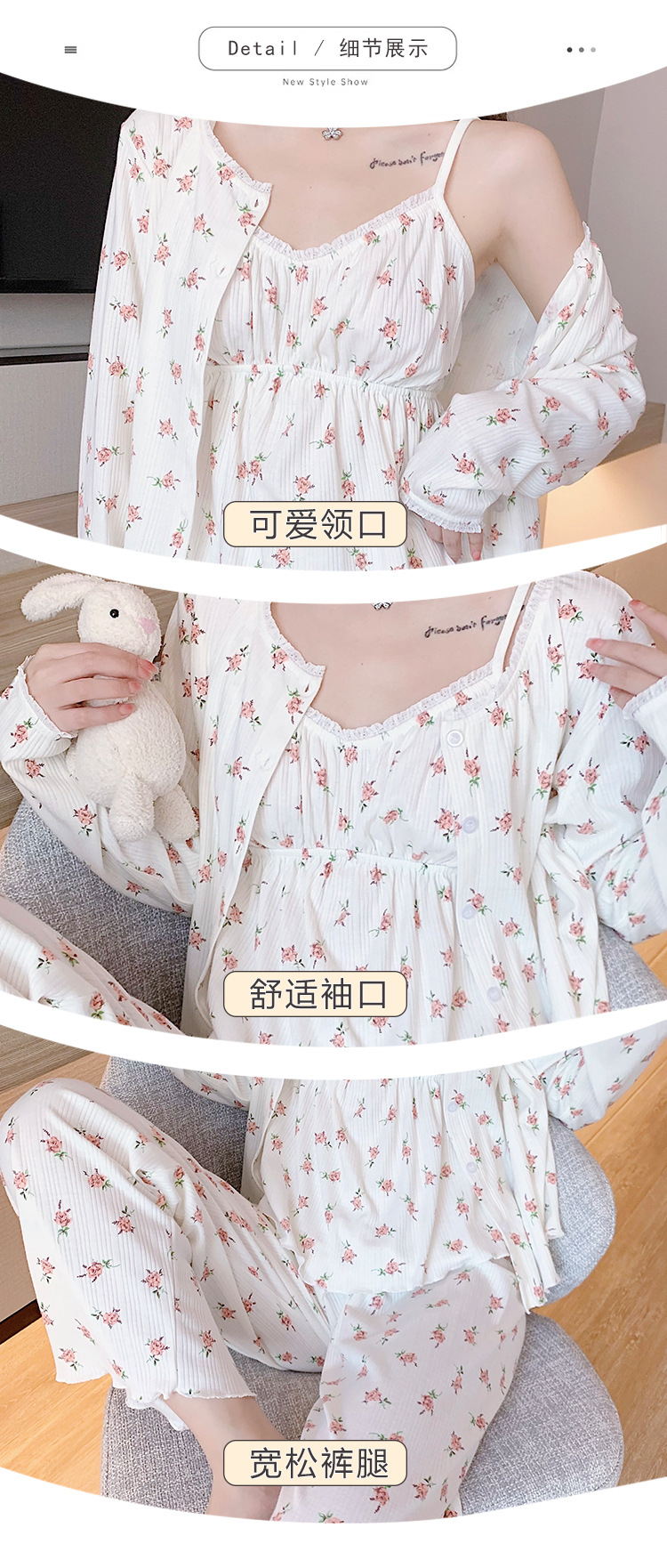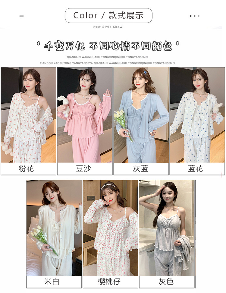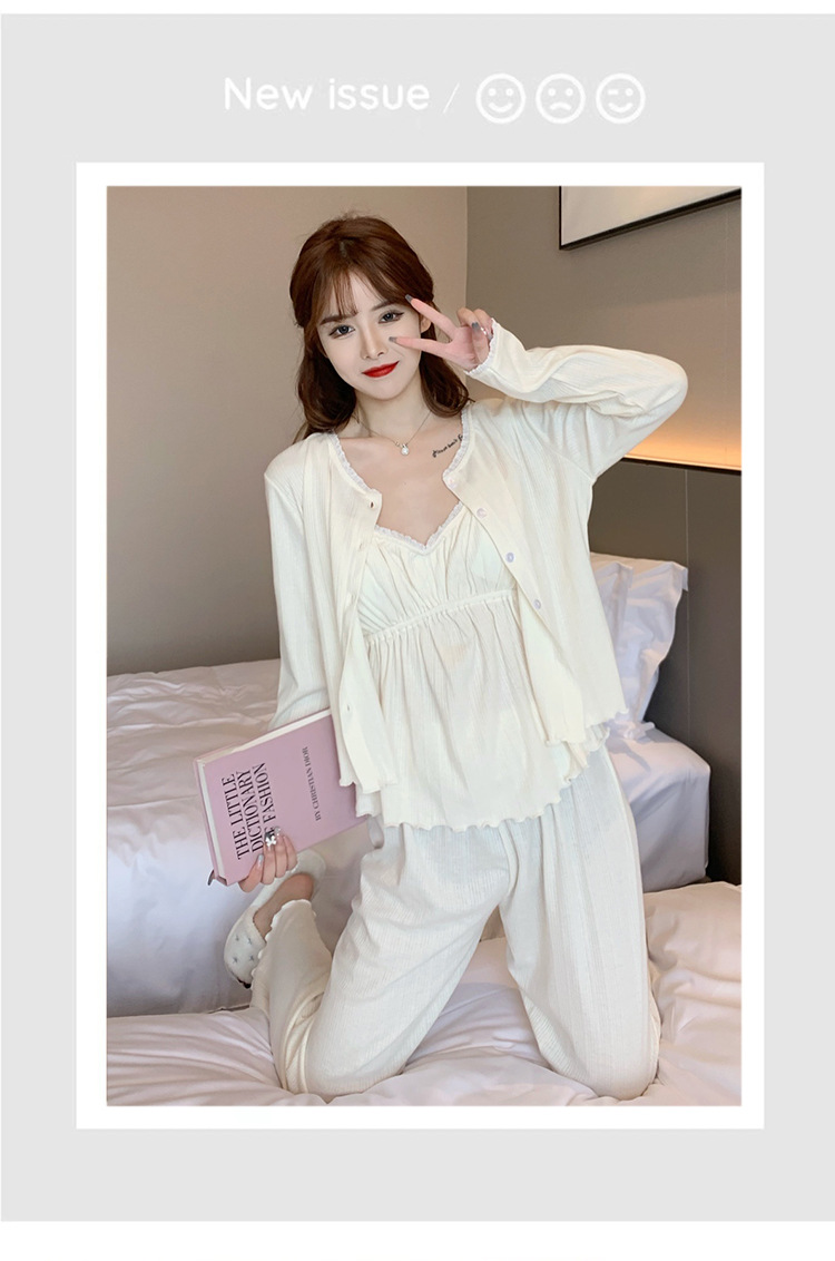 スリーピースパジャマレディース春と秋の新作6535コットン少女セクシーストラップロングパンツ胸パッド付きホームウェア薄い