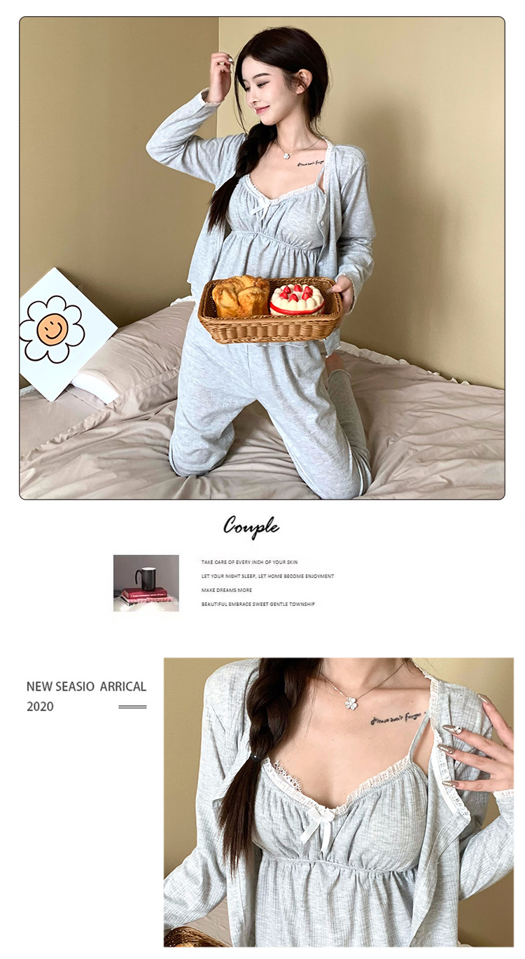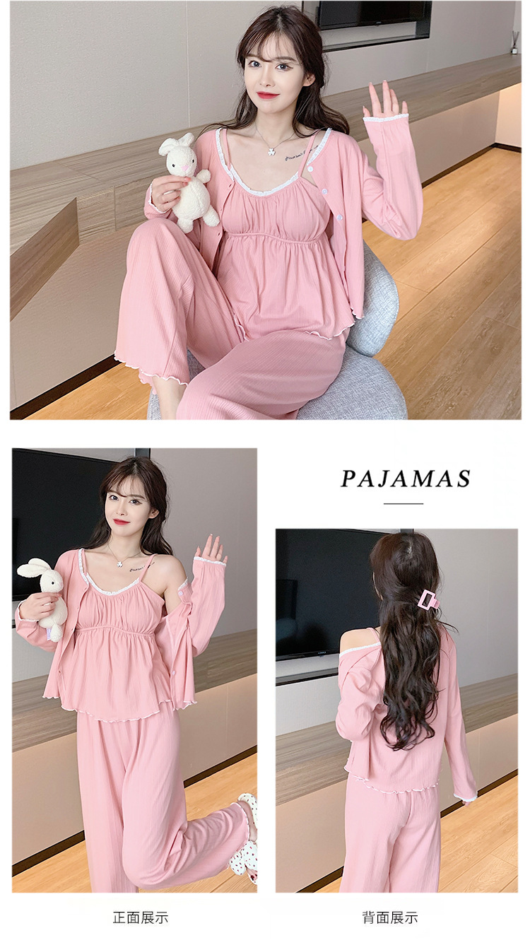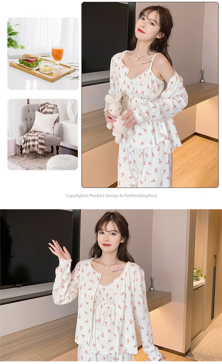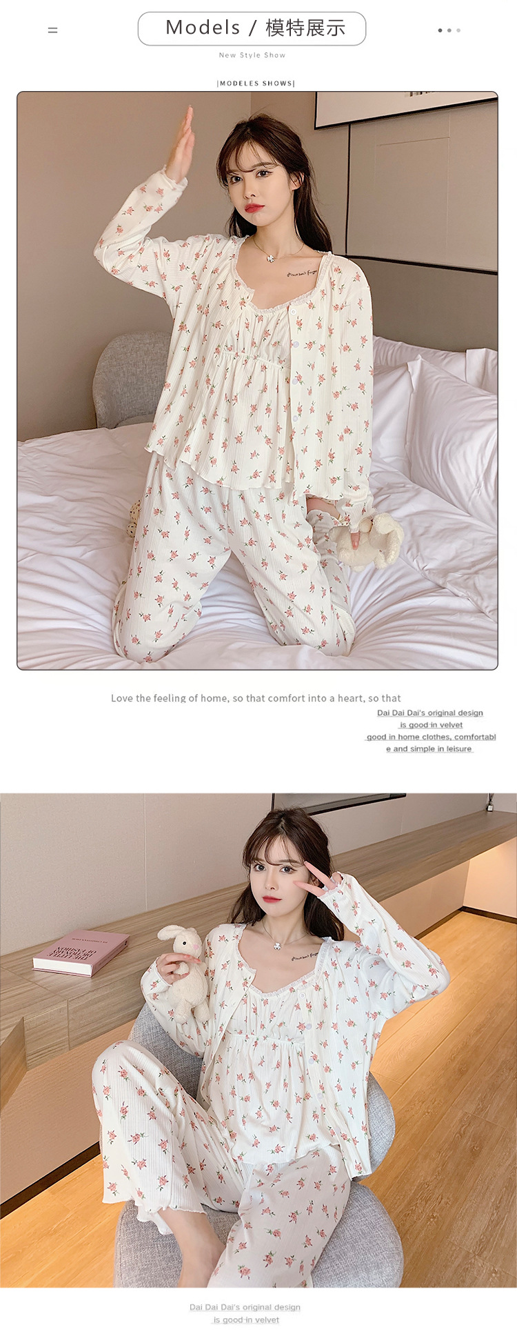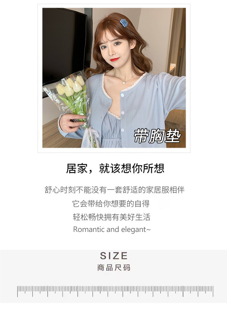 スリーピースパジャマレディース春と秋の新作6535コットン少女セクシーストラップロングパンツ胸パッド付きホームウェア薄い