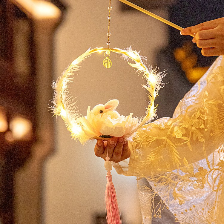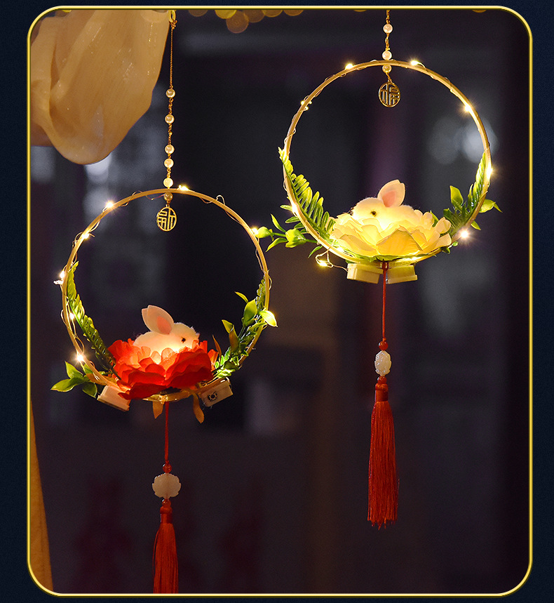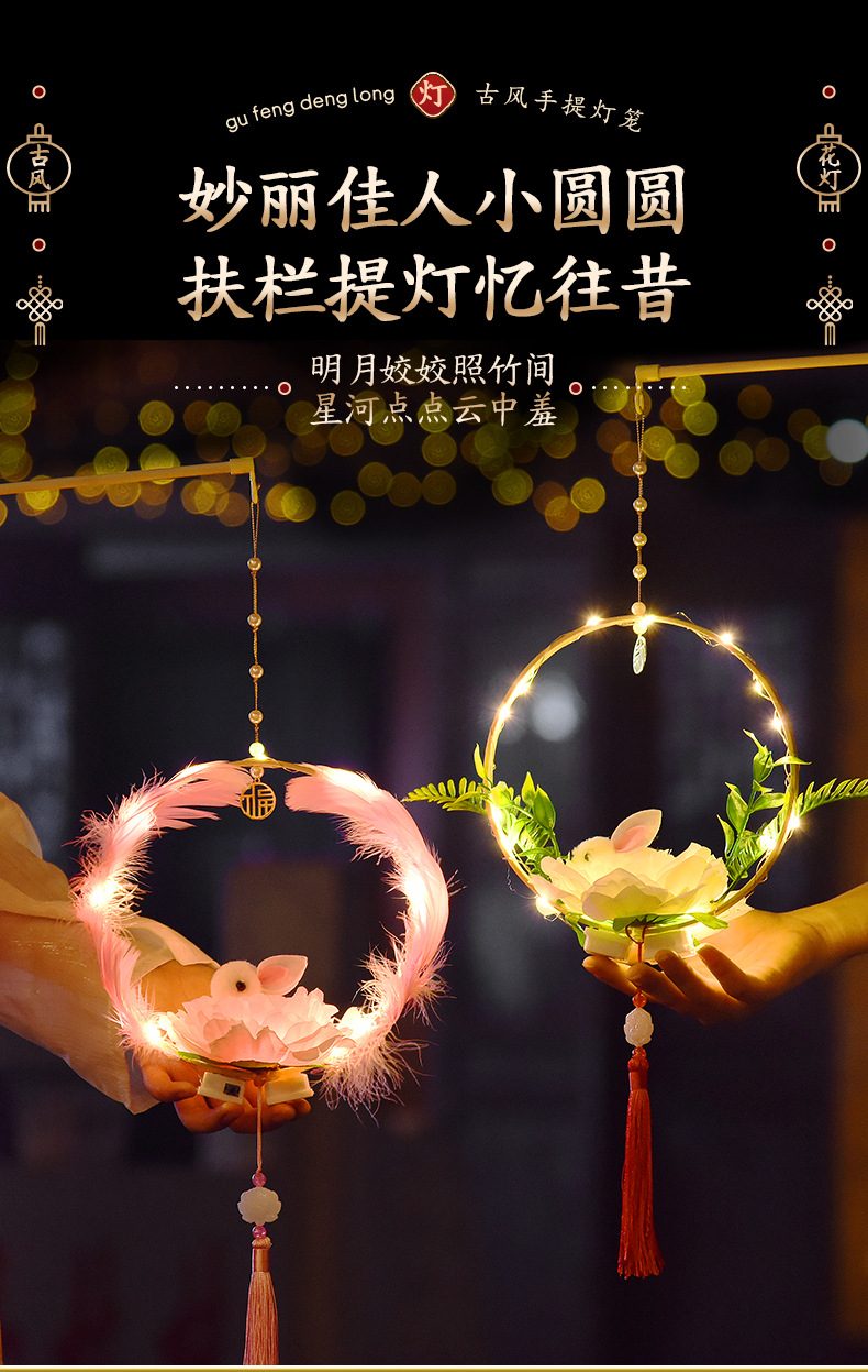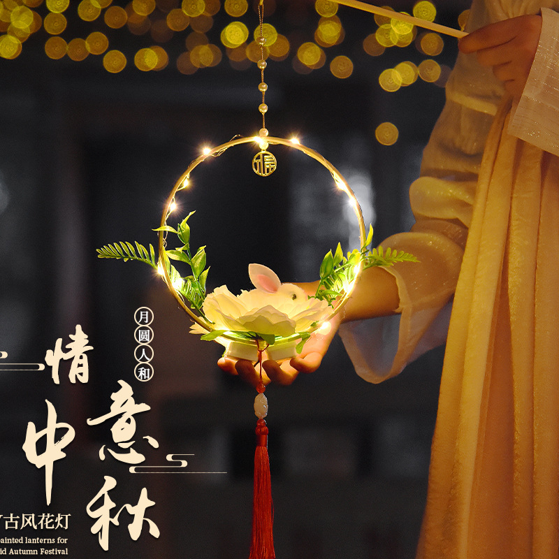 手提提灯DIY子供用材料パック、中国風、国潮、古風、中秋節、光る玉兎花灯