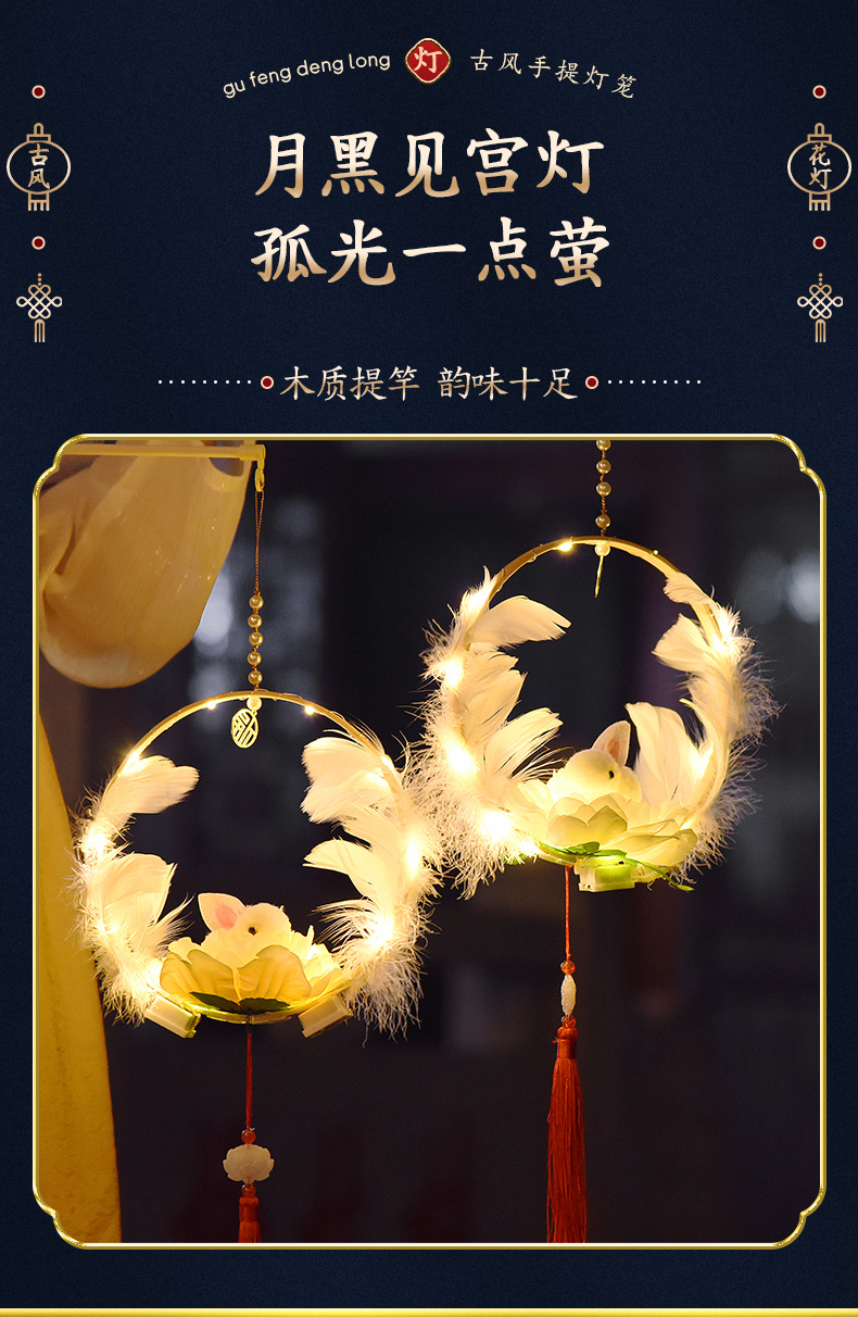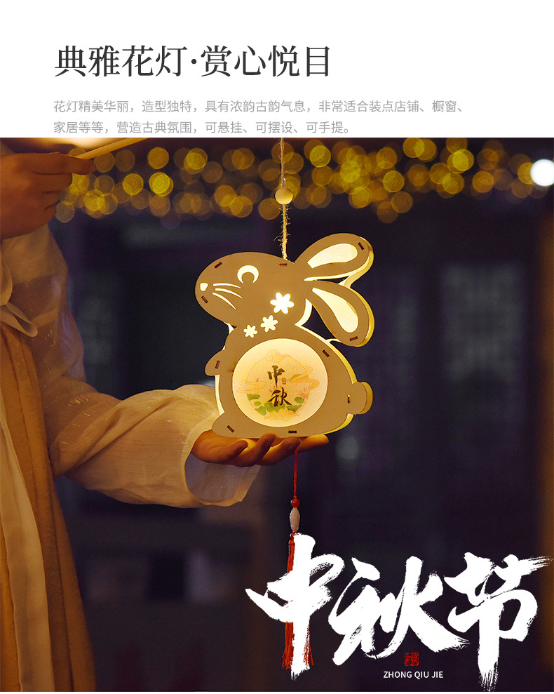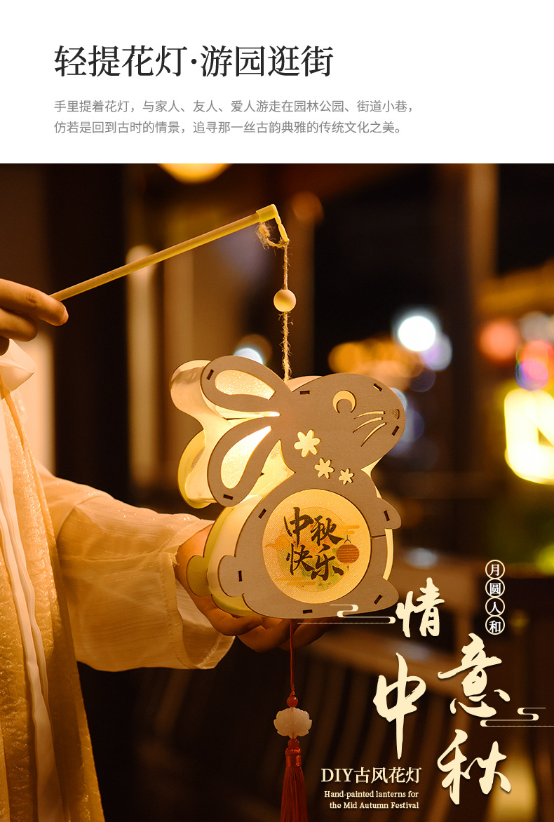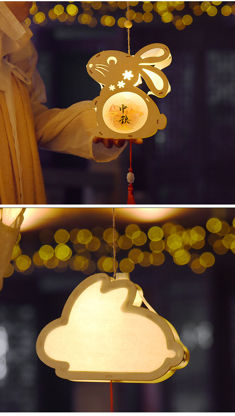 中秋节灯笼发光手提木质旋转古风花灯手工diy材料包小兔子灯宫灯