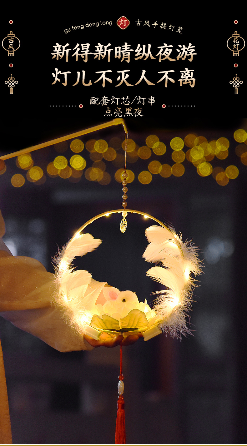 新春年灯笼摆摊兔子发光儿童手提古风灯笼汉服装饰宫灯材料包批发