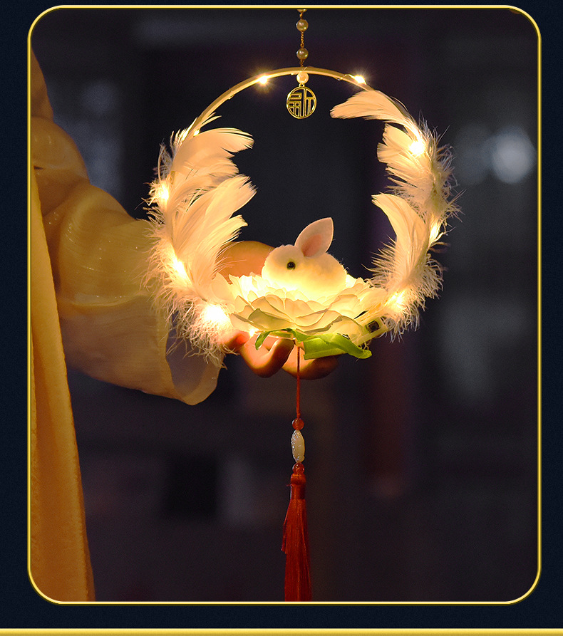 中秋節うさぎ蓮花灯DIY手作り材料パック、持ち運び可能な発光ランタン、蓮花ランタン、古代風玉兎宮灯