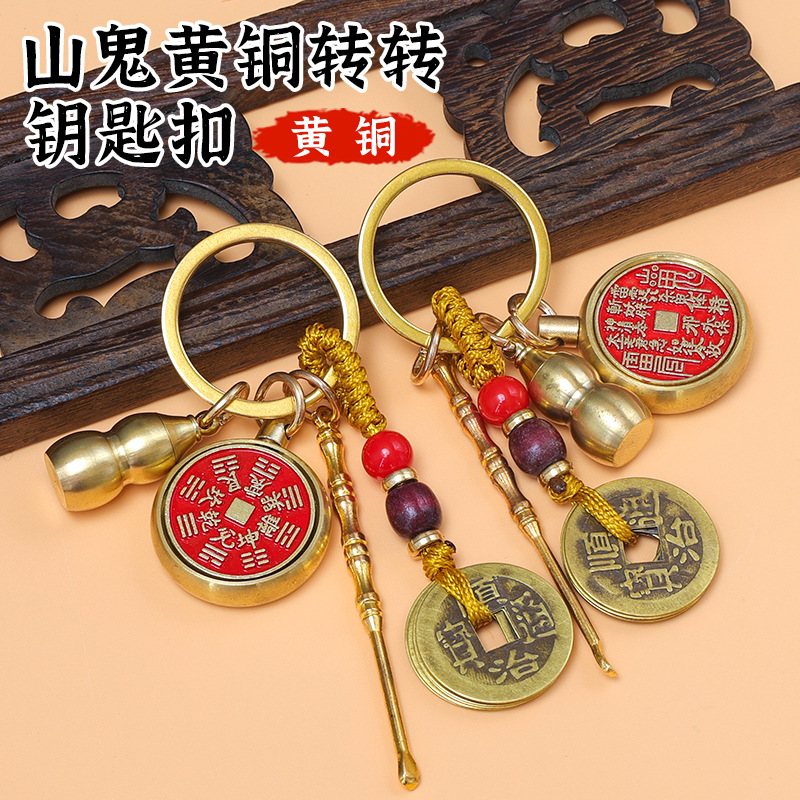 黄銅山鬼花钱キーホルダー五帝銭山鬼回転朱砂キーホルダー祥雲五帝銭キーホルダー