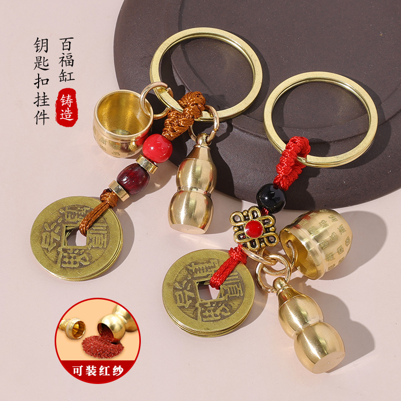 新款黄铜迷你百福缸五帝钱铜葫芦钥匙扣汽车钥匙挂件厂家批发