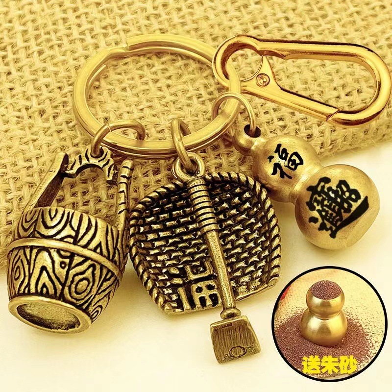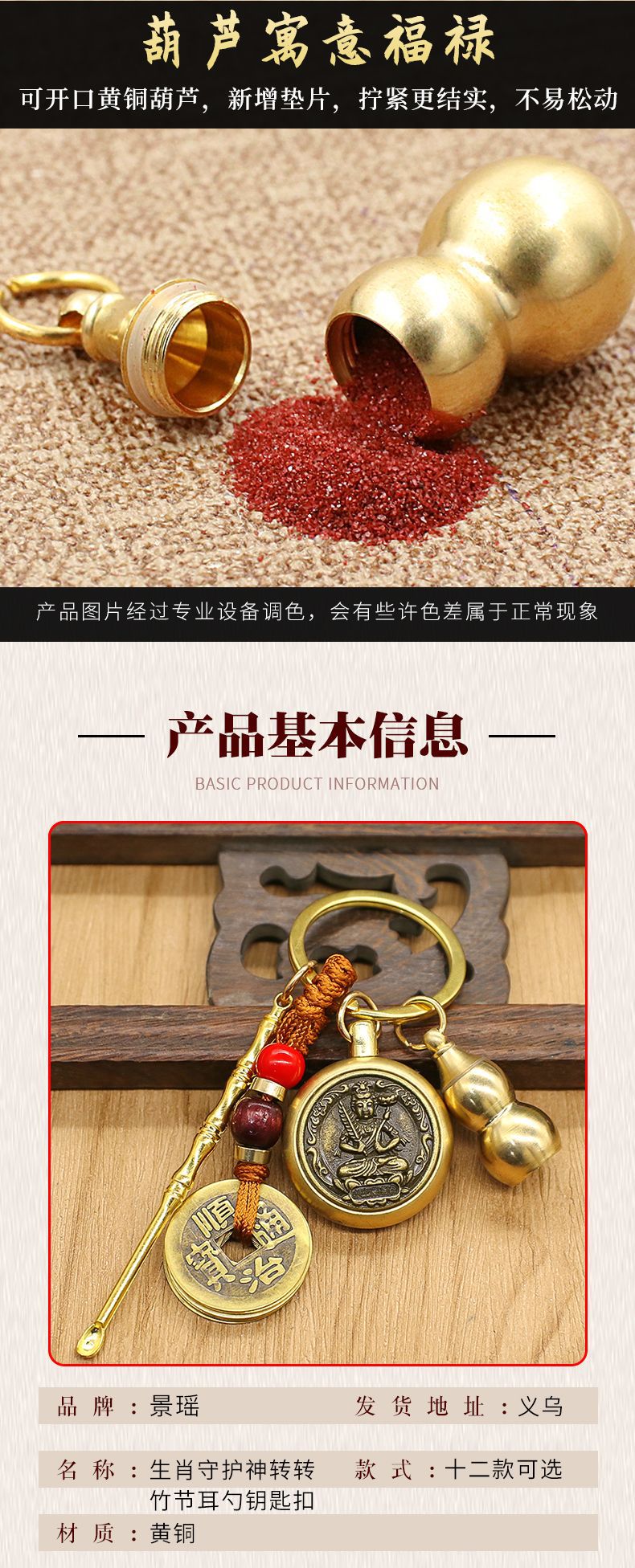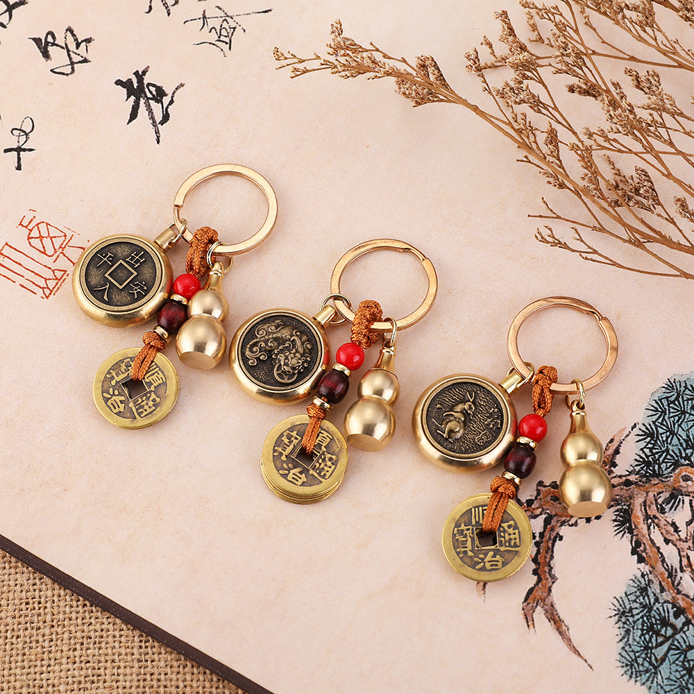 十二生肖黄銅瓢箪キーホルダー招財福桶男女聚財箕自動車キーホルダー部品