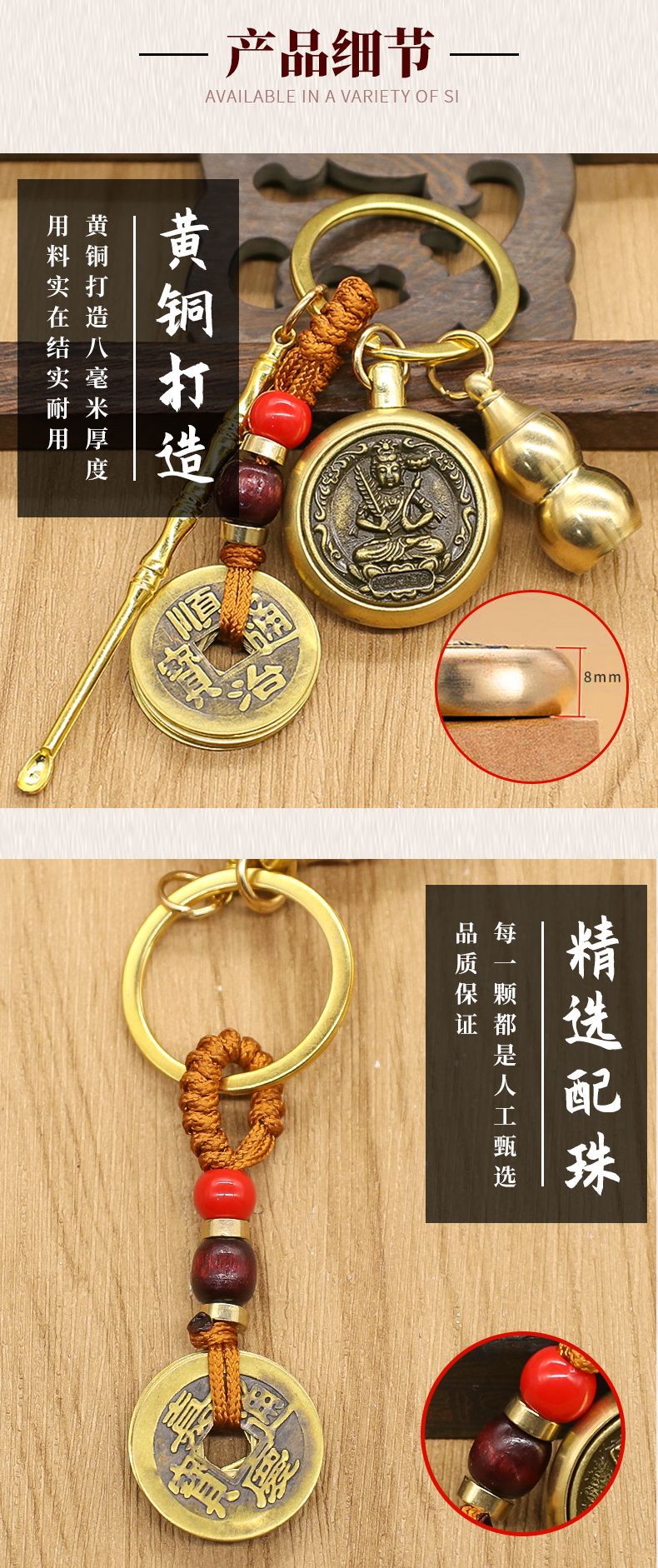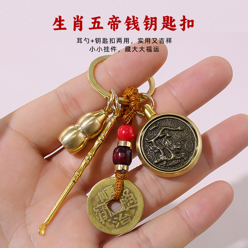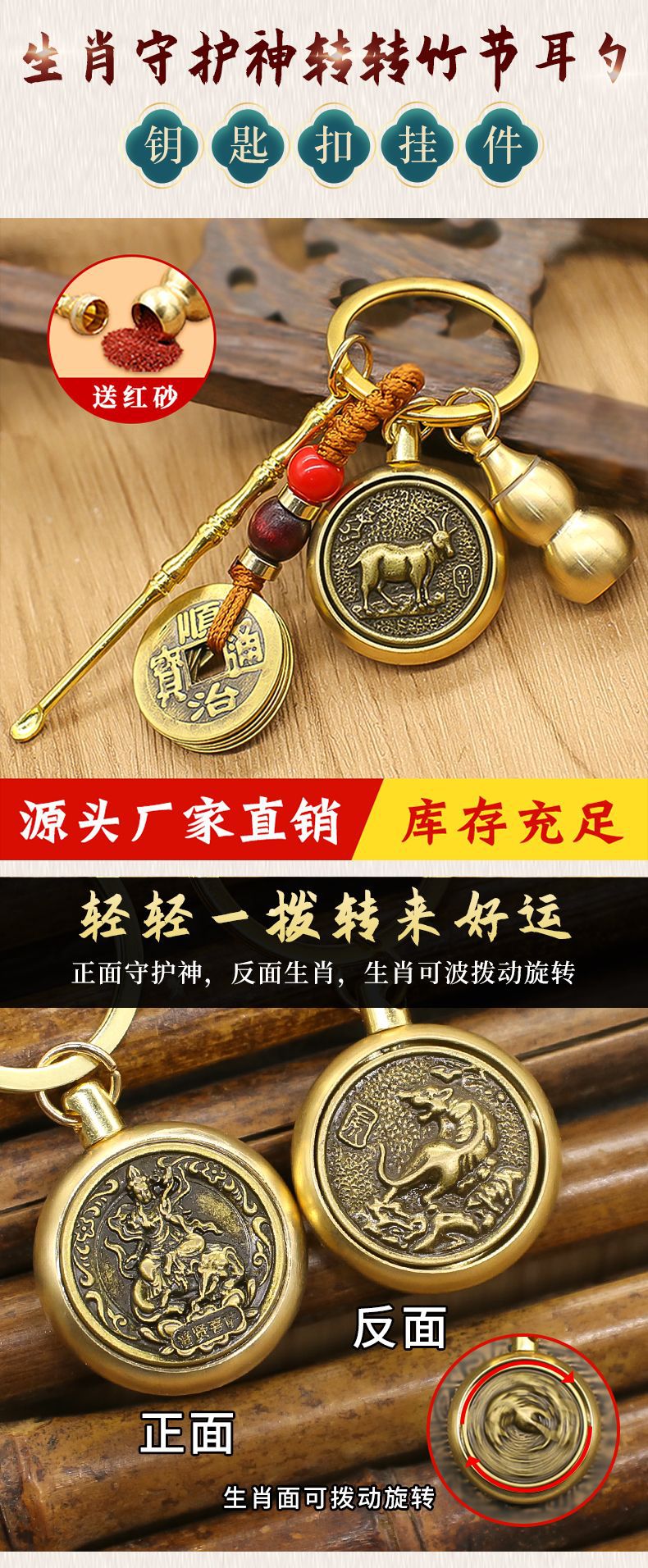 黄銅十二生肖回転キーホルダー五帝銭片面回転八大守護神自動車ペンダント