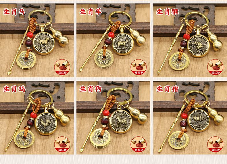 黄銅十二生肖のキーホルダーは金を集めて鍵を回します。