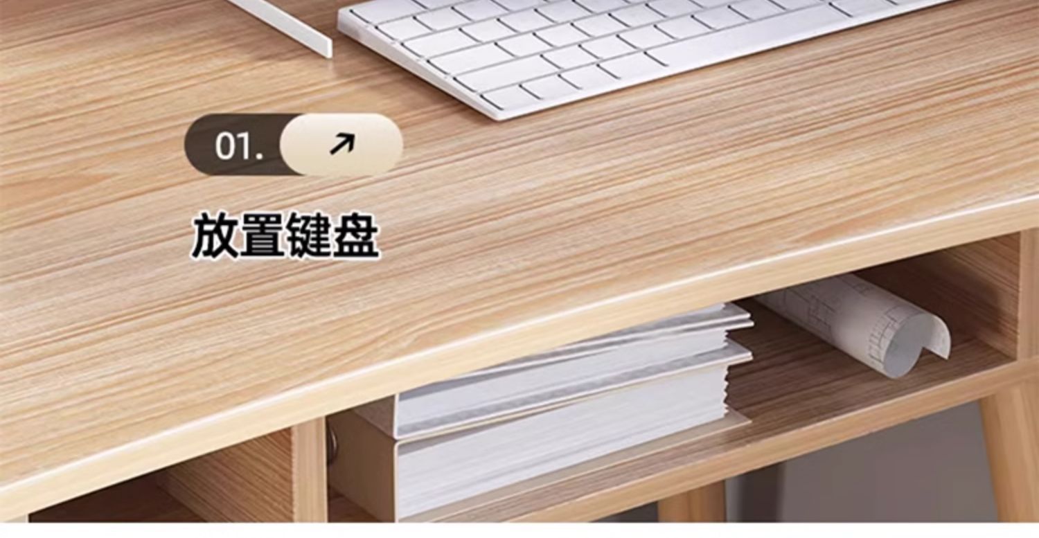 机の下の本棚の棚の床の本の収納ケースは移動可能です。