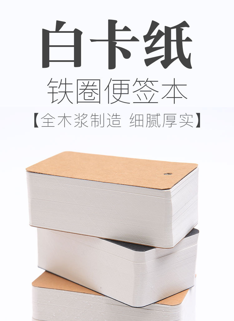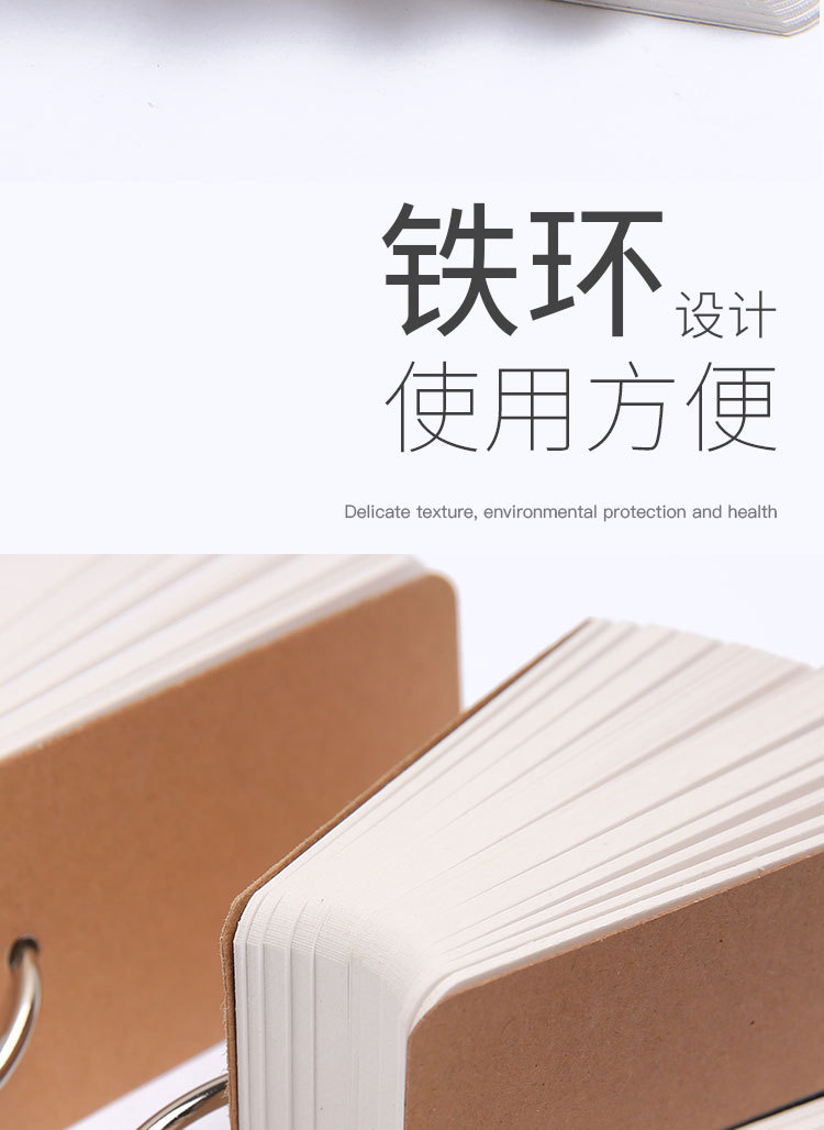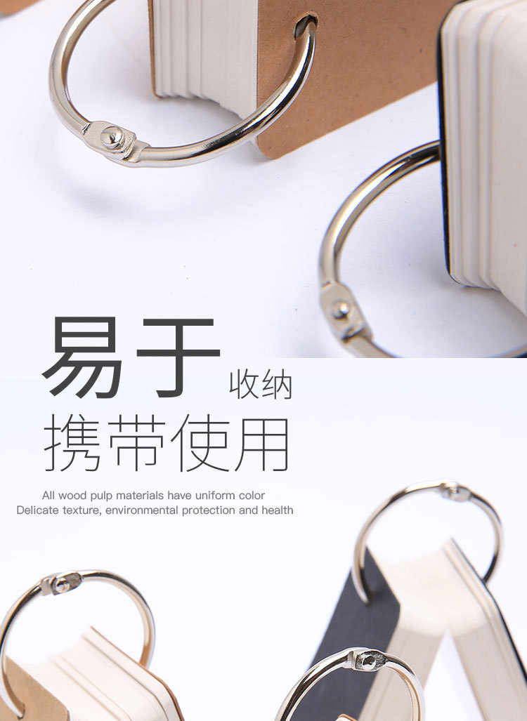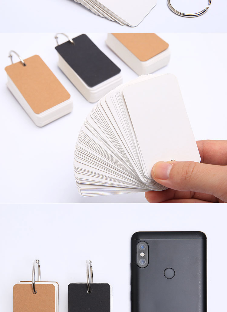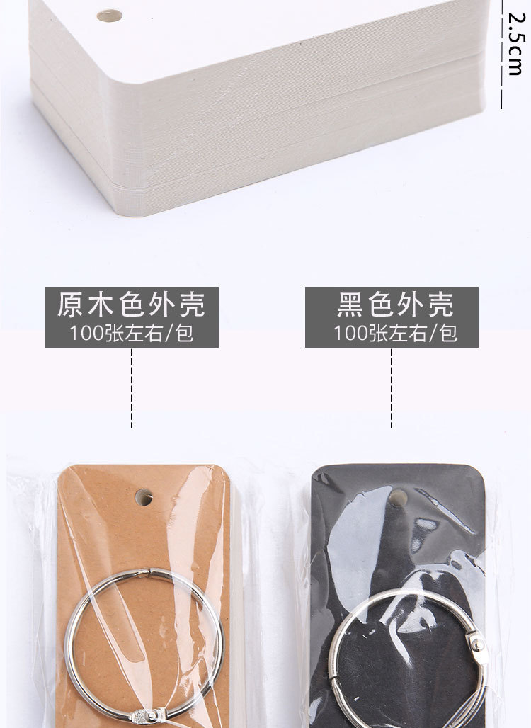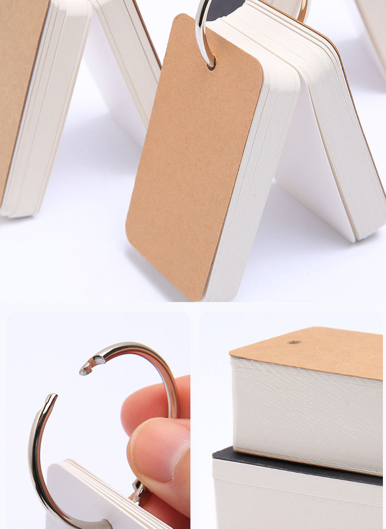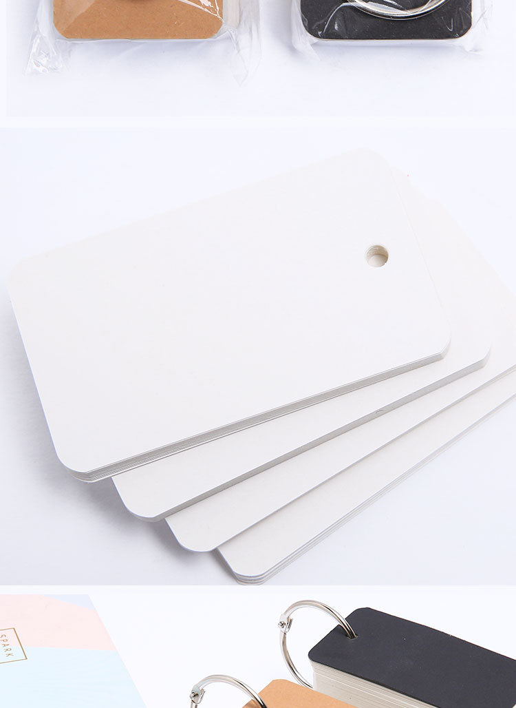 空白カード 英単語カード 白い硬質ボール紙 ポータブルノート パンチングカラー リングバックル 小さなノート