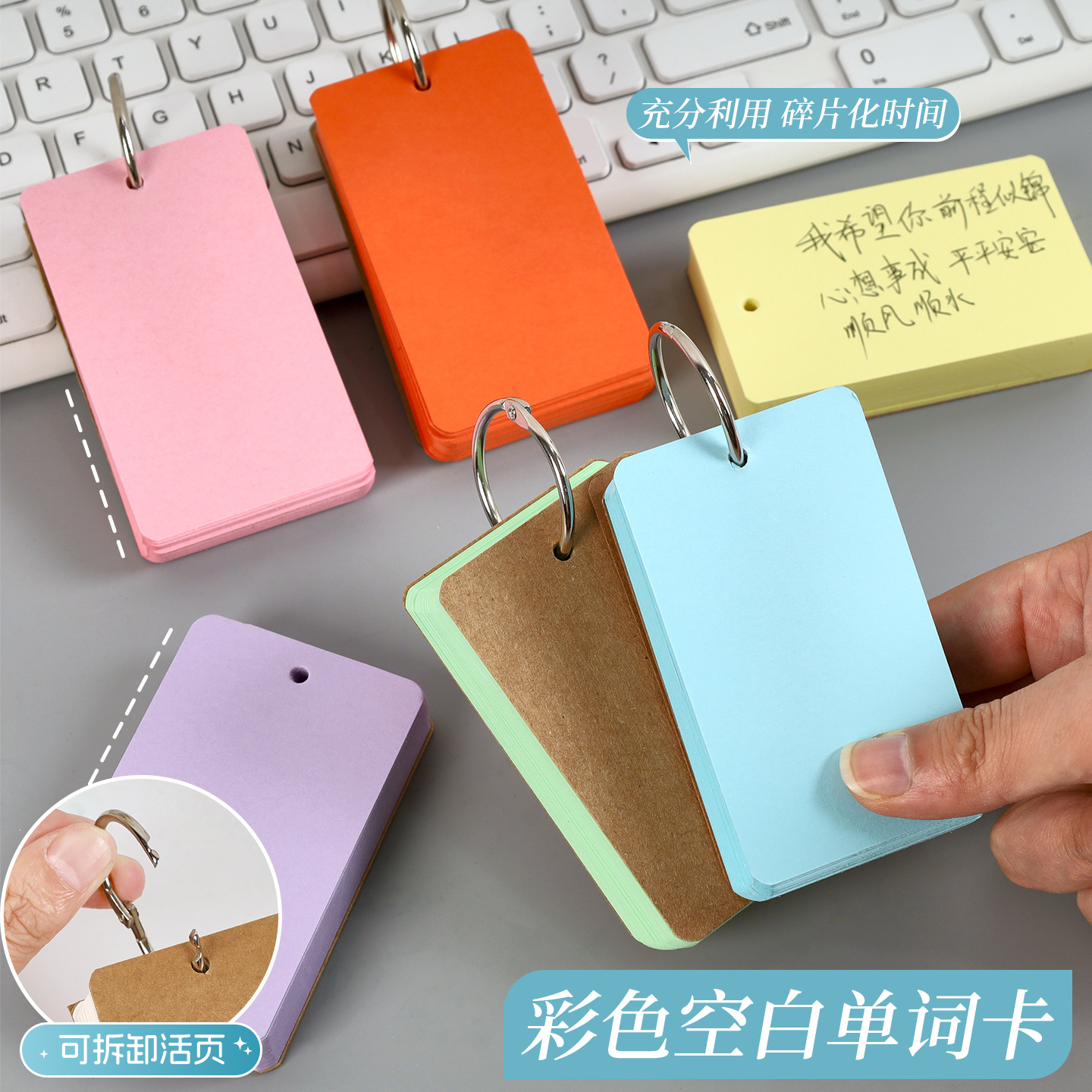100枚の空白の単語カードのルーズリーフのカードのリング式の取り外し可能なメッセージカードの付箋の英語のメモリカードのハードカード