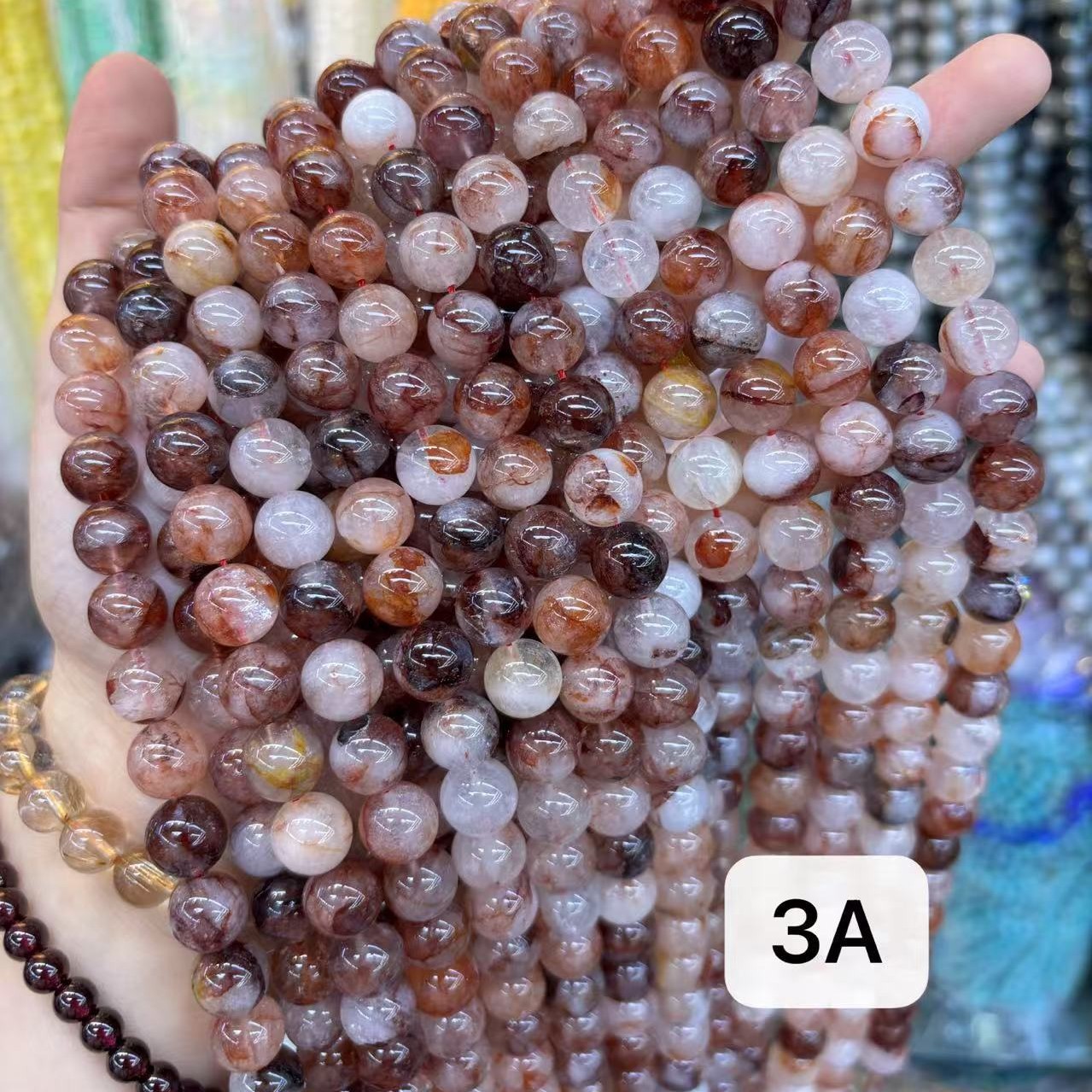エルビジュエリー5A天然黒金超七水晶散珠円珠雲母共生発水晶DIYアクセサリー卸売り