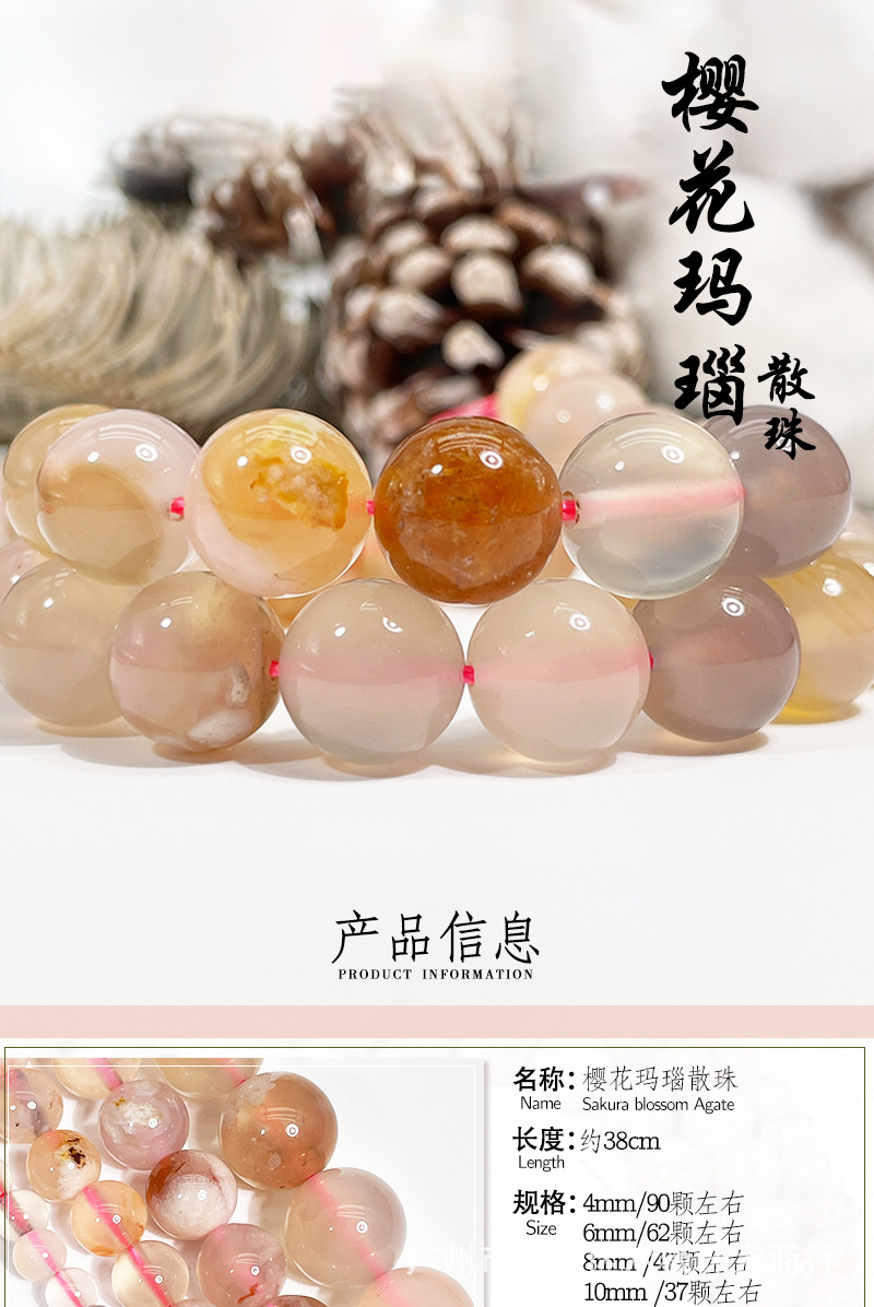 天然桜瑪瑙散珠半製品の手飾りdiy部品のピンクのビーズの卸売りのボール