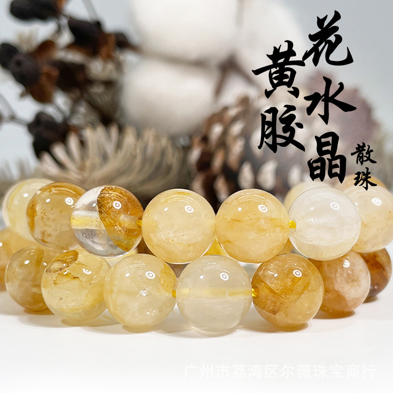 天然イエローゴールド花水晶散珠半製品手飾りdiy部品天然水晶ビーズスポット卸売り