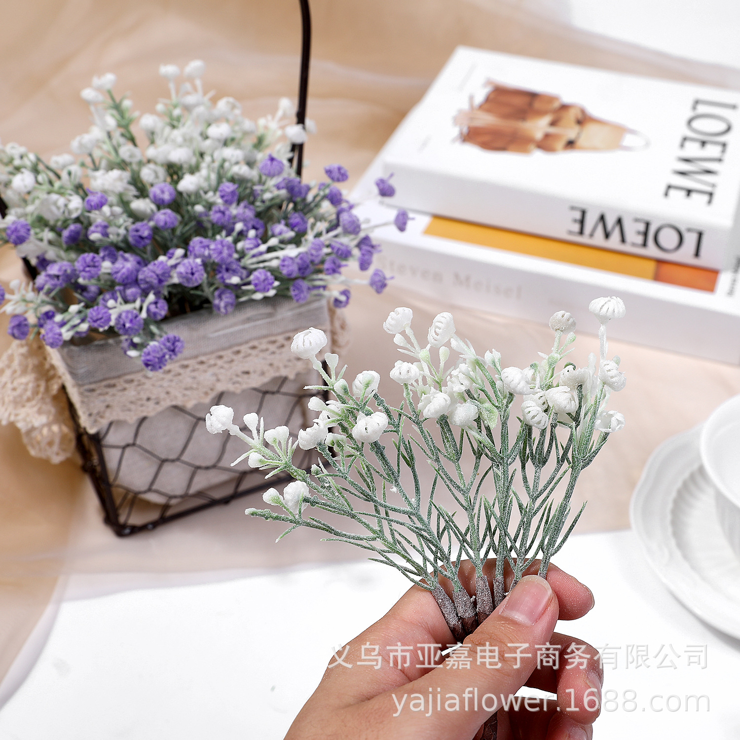 シミュレーション緑植偽プラスチック花スプレー白霜草装飾生け花配合草単枝葉喜糖箱礼箱装飾草