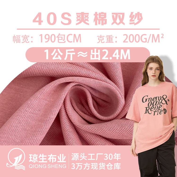 40番手の密織綿二重糸平織り生地200g片面コーマ綿ニット汗取り布全綿Tシャツ生地