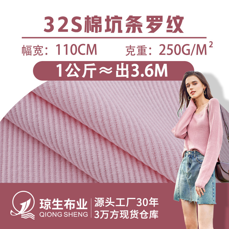 2*2纯棉拉架220G秋冬打底女装弹力面料打底衫针织罗纹布坑条布料