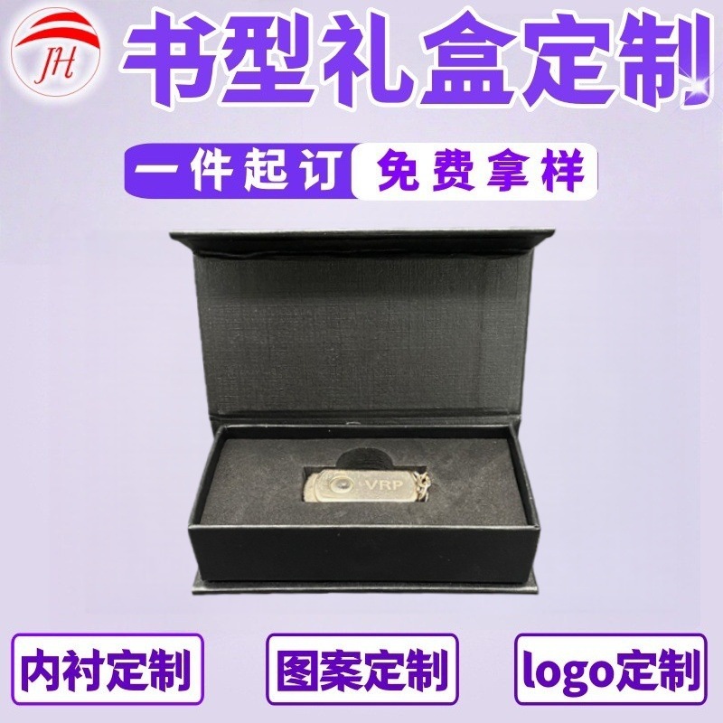 小さな黒い箱uディスクギフトボックス黒プラススポンジフリップボックス本の形黒いギフトボックス磁気鉄ボックススポンジ