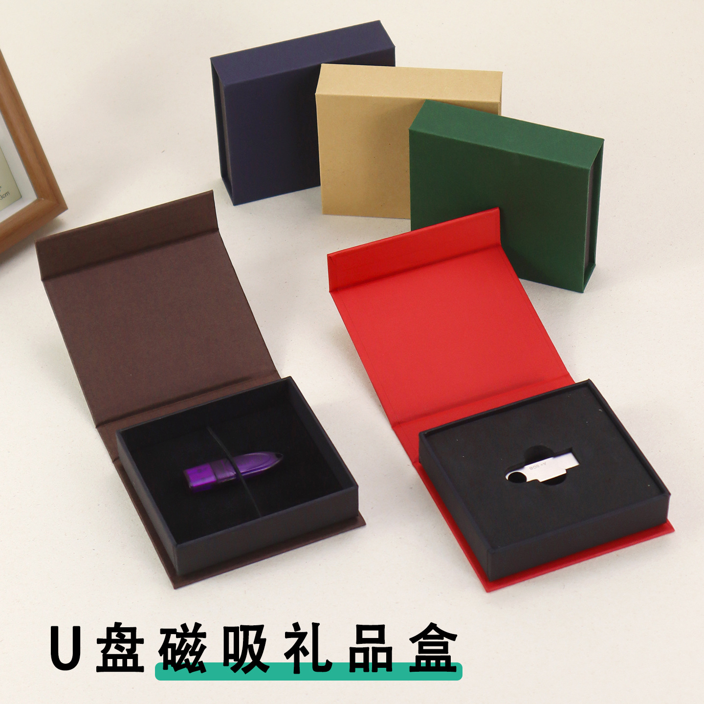 方形迷你U盘礼盒饰品收纳盒项链翻盖式磁吸盒可定制尺寸烫印LOGO