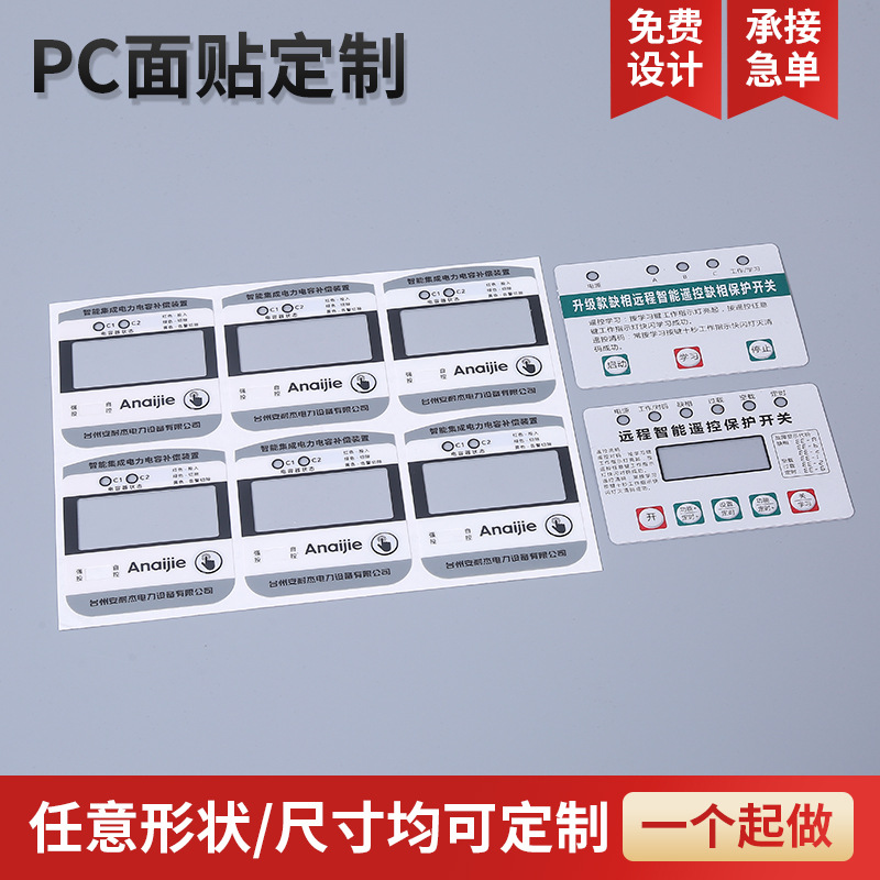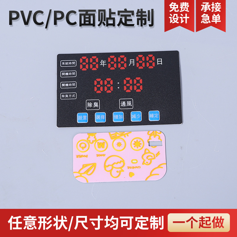 Pvcボタンパネル家庭用電気製品ドラム包装フィルム面シールpc電子銘板カラーパネルカスタマイズ